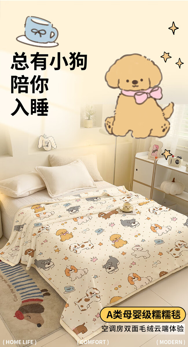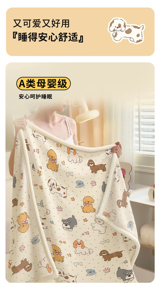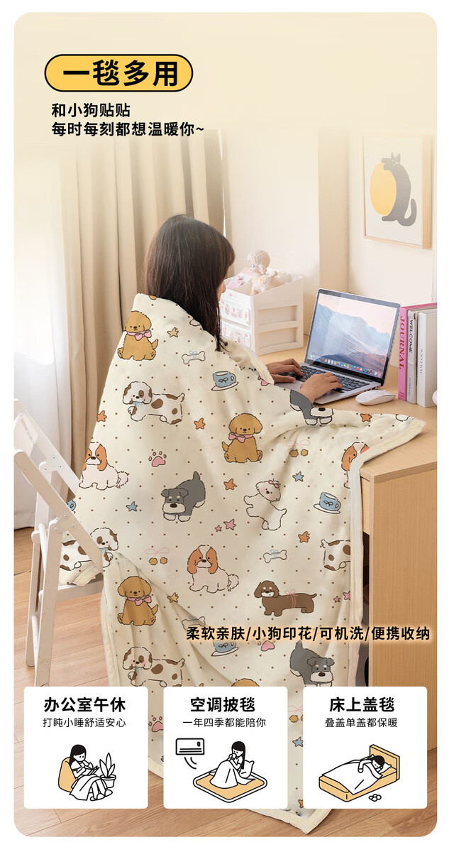 Fantasy and cute coral plush blanket towel quilt office nap sofa blanket learning lunch break air-conditioning blanket throw blanket polka dot color dog A-grade mother and baby grade temperature lock and heat preservation to resist shedding 1.8x2.0m suitable for 1.5m wide bed/double blanket can be covered