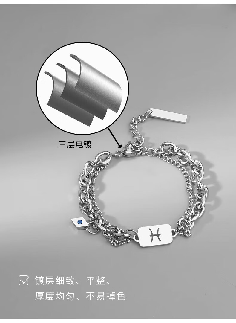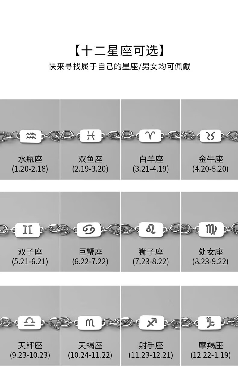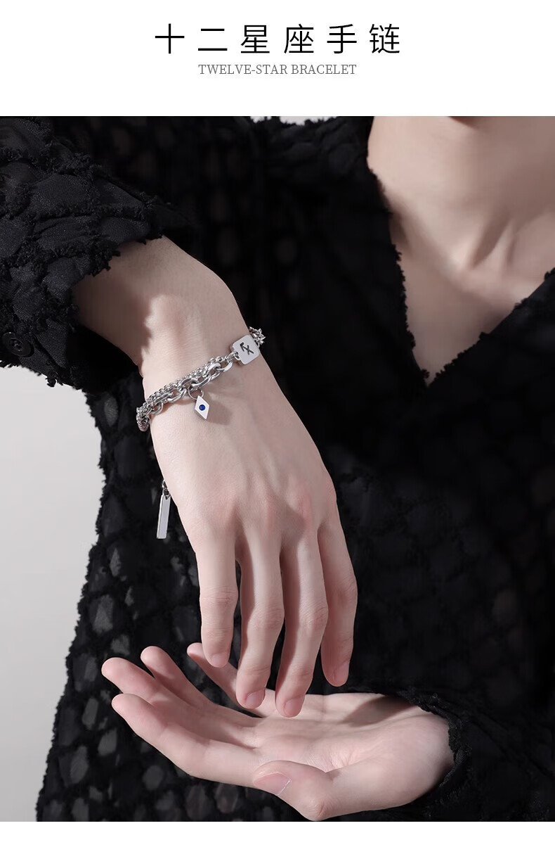 MZMZ platinum bracelet for men pt950 platinum zodiac sign decoration versatile accessories Valentine's Day birthday gift for boyfriend and girlfriend Same day/next day delivery - light luxury fashion zodiac sign bracelet note zodiac sign