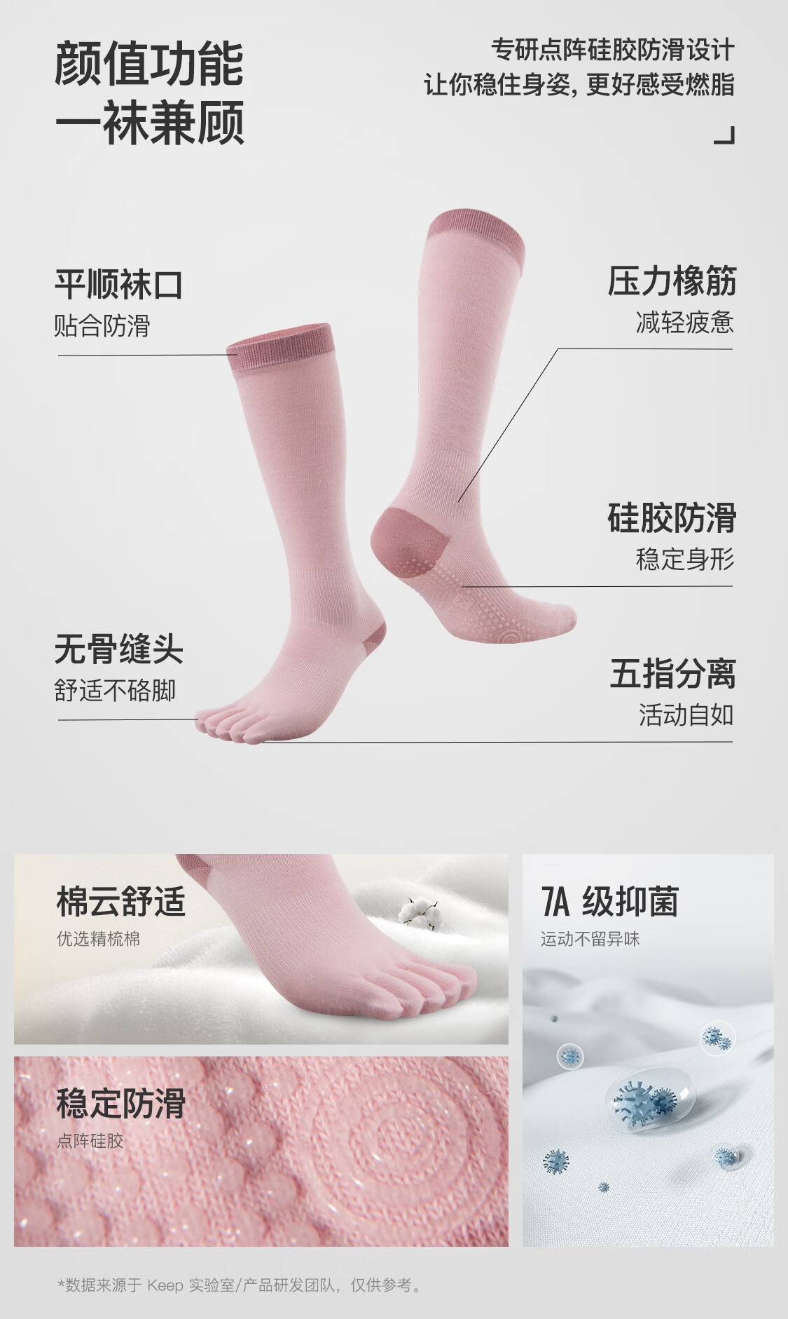 Keep mid-calf yoga functional socks non-slip breathable five-finger separation indoor fitness floor sports dance Pilates socks mint green