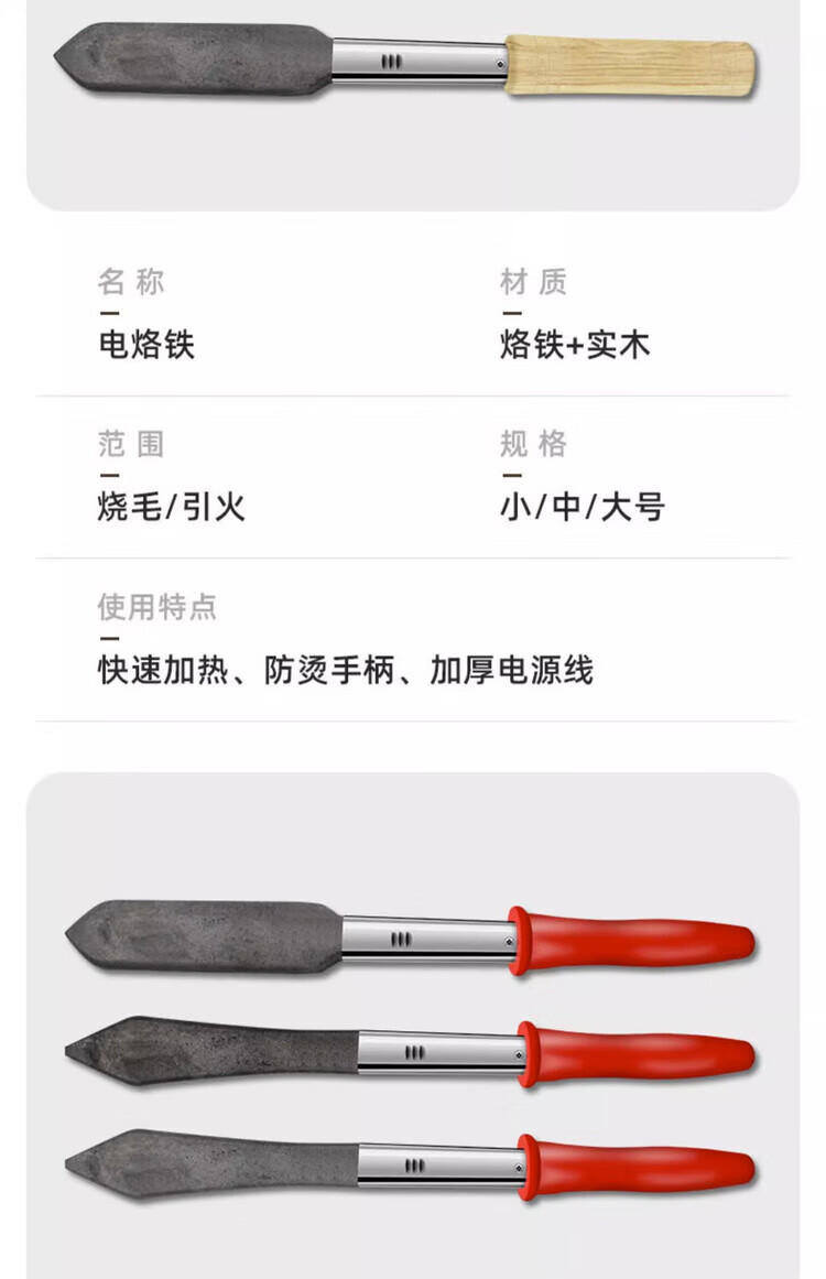 Taipeng rural roasted pig hair iron, pig hair iron, pig hair iron, meat removal tool, Luotie household electric iron, medium wooden handle, pig hair iron