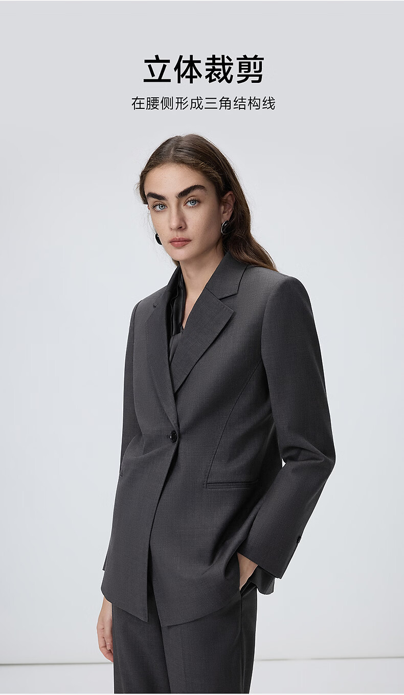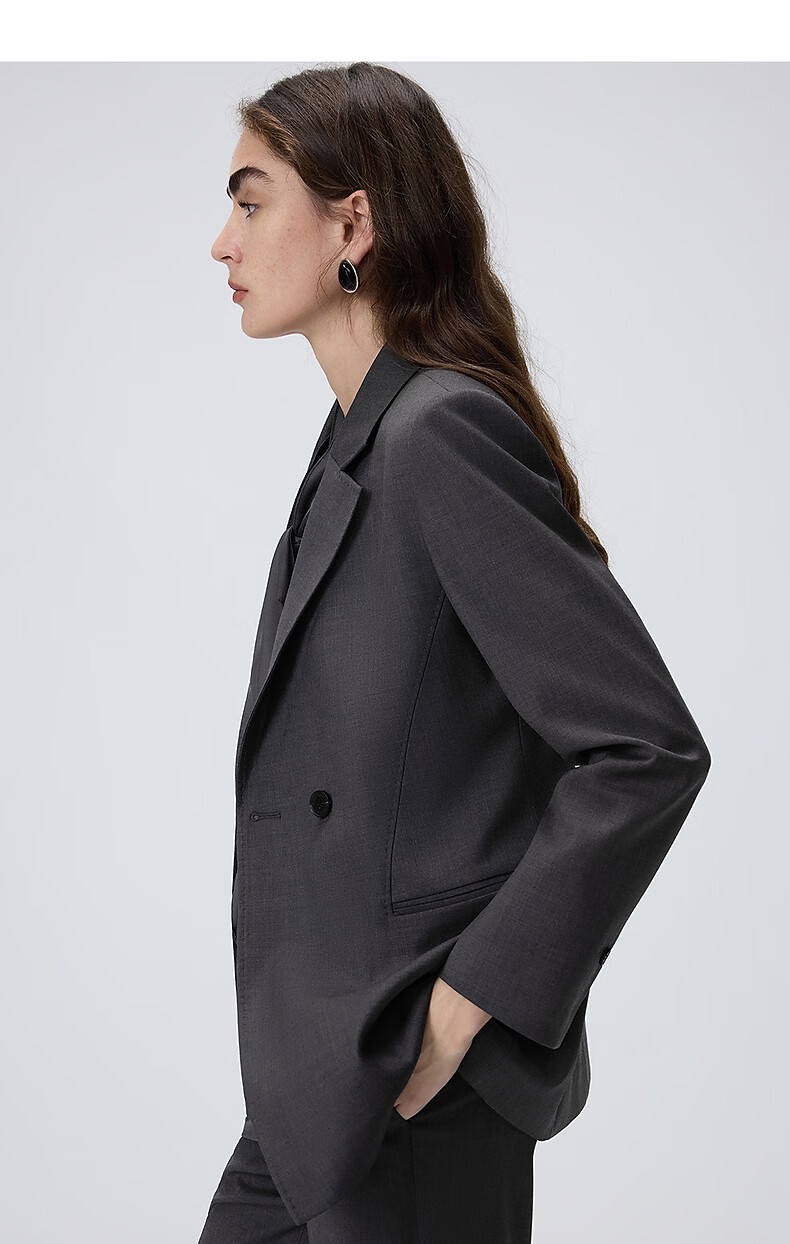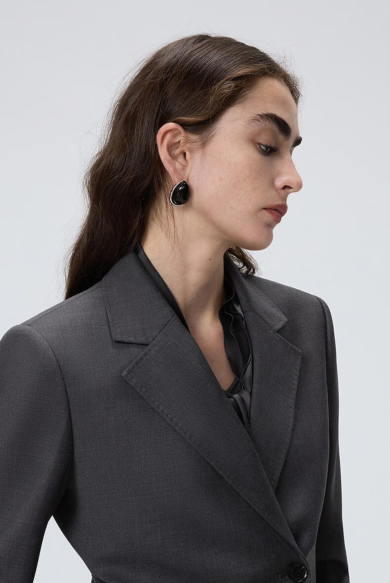 Langzi wool temperament flat lapel suit high-end gray commuter suit jacket 2026 spring new women's medium gray L