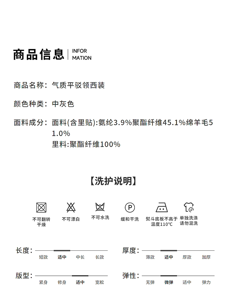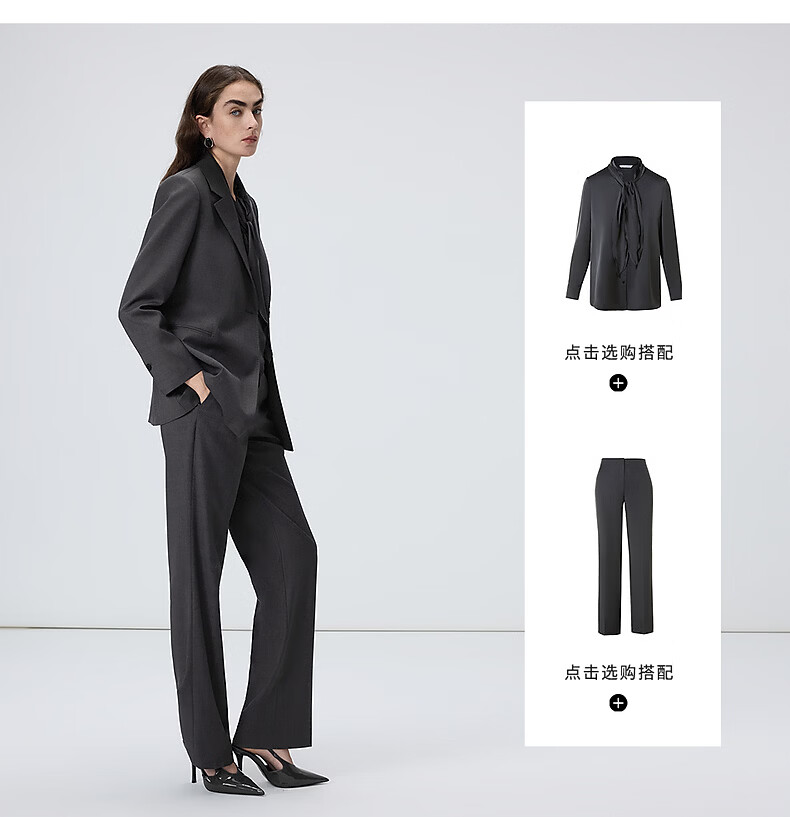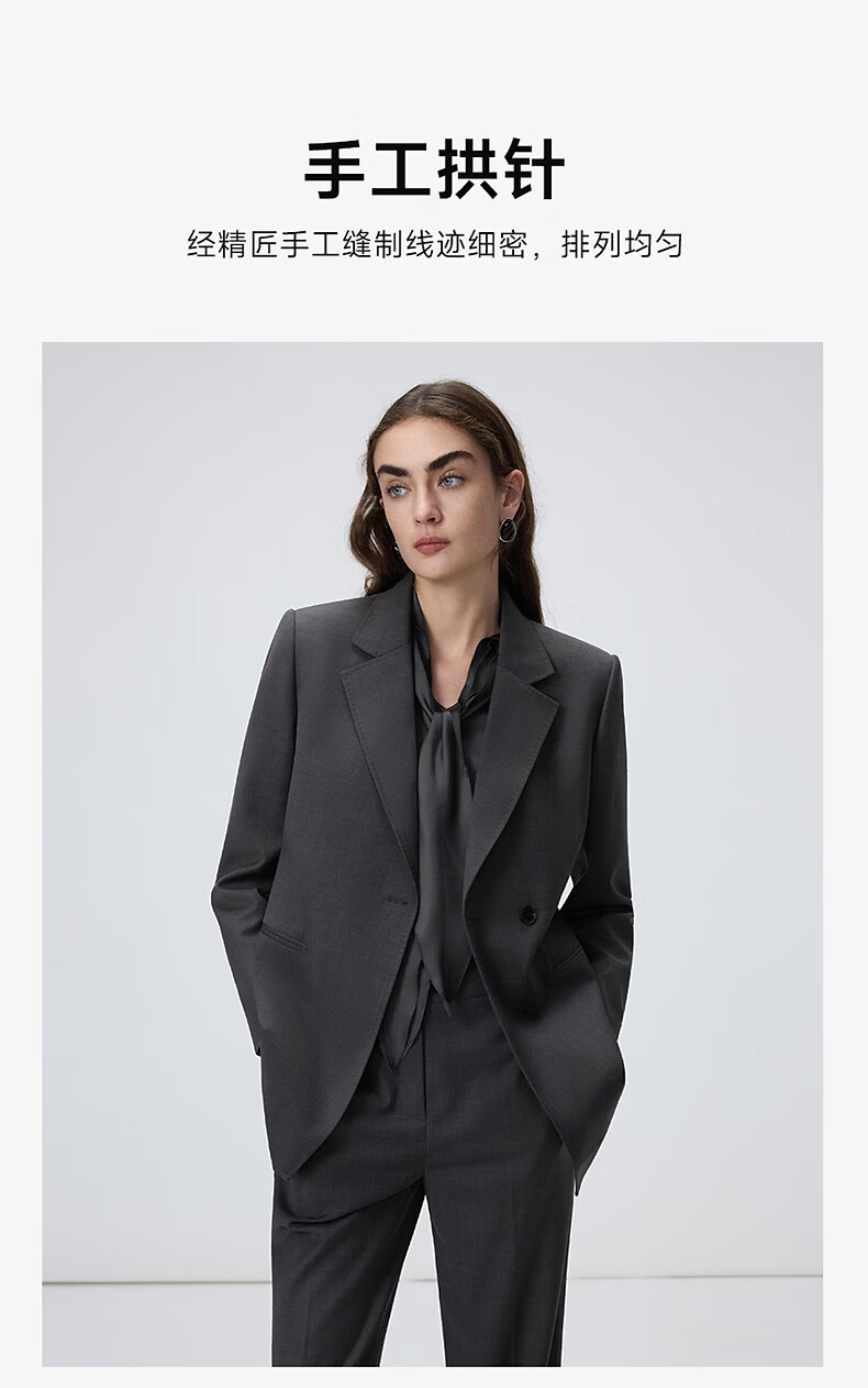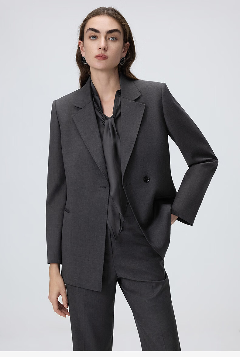 Langzi wool temperament flat lapel suit high-end gray commuter suit jacket 2026 spring new women's medium gray L