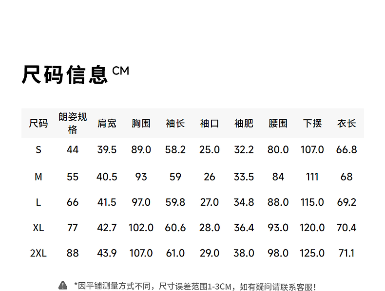 Size (cm) 42 44 46 48 50