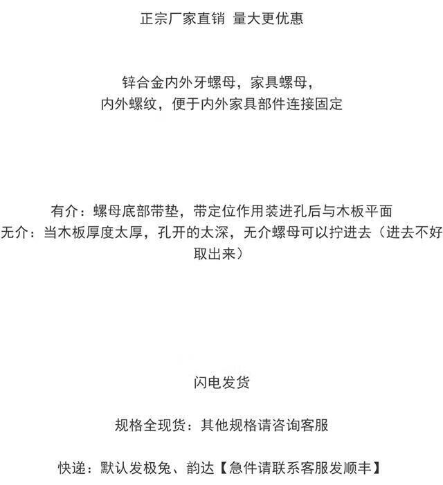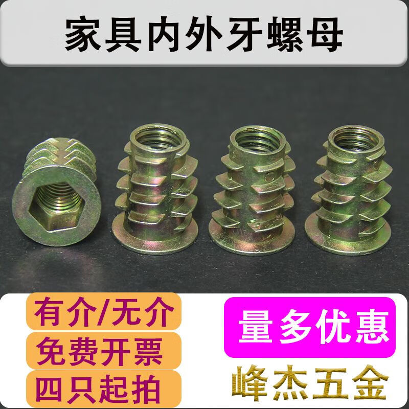 YWZR furniture embedded nut with internal and external thread nut trapezoidal nut nut zinc alloy M4M5M6M8M10 universal with 4-pack 8*25mm
