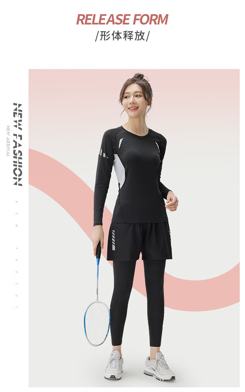 LI NING Li Ning yoga wear women's Pilates running long-sleeved top 2025 new spring fitness suit black gray slim_high elastic two-piece set S