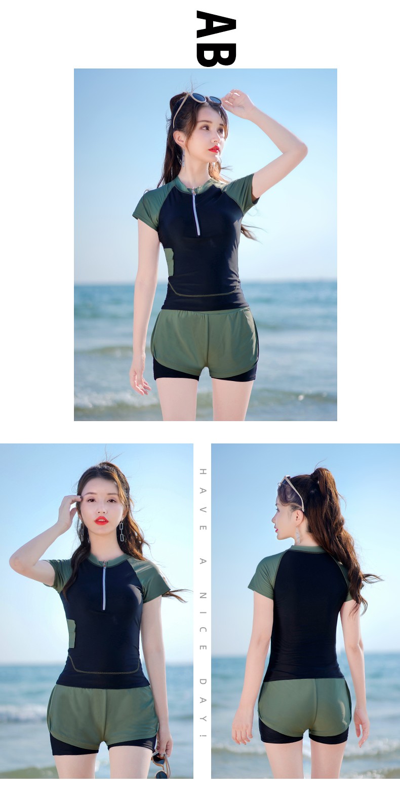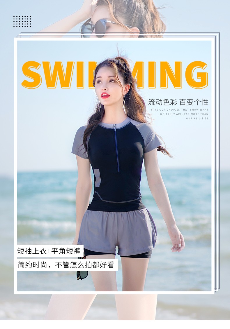 Zailu swimsuit female conservative student two-piece split belly-covering slimming swimsuit 2024 new sports hot spring swimsuit dark gray nose clip earplugs + flat swimming goggles M size recommended weight 88100Jin Jin is equal to 0.5 kg