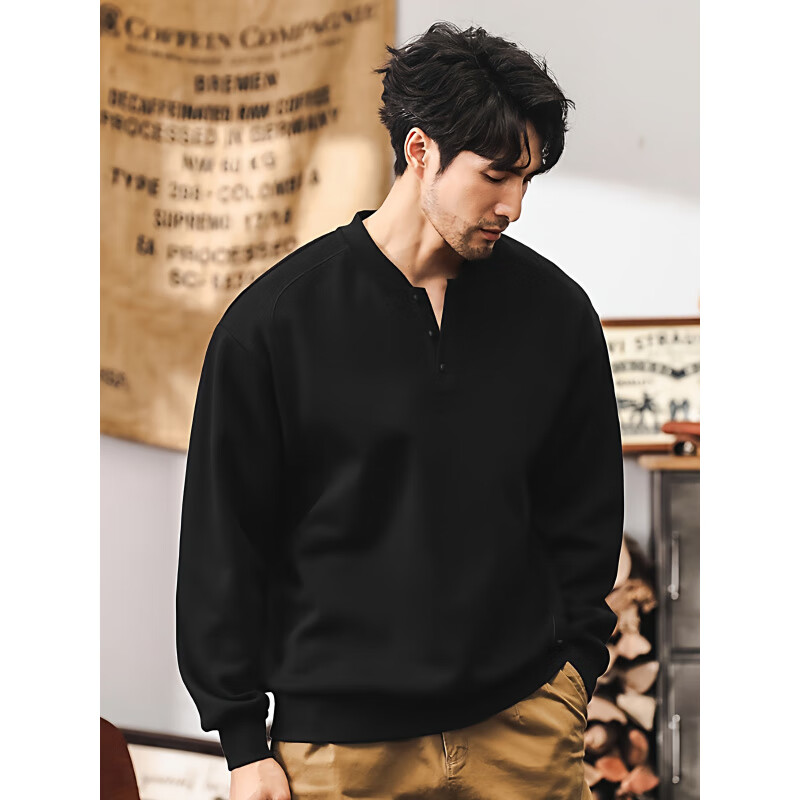ISI Warm Autumn American Retro Heavyweight Sweater Men's Autumn Trendy Henry Collar Half Cardigan Jacket Men's Spring and Autumn Style Long Sleeve PO Black_ 350g Heavy M _ Suitable for 100-125Jin Jin equals 0.5 kg