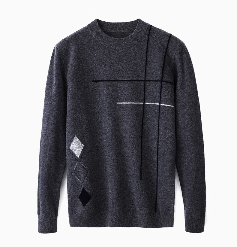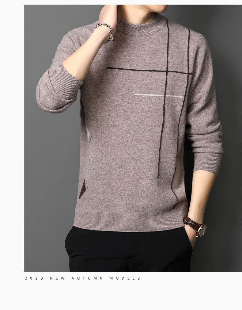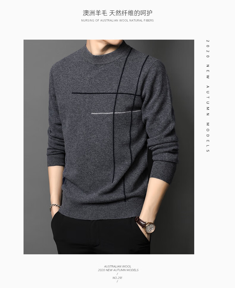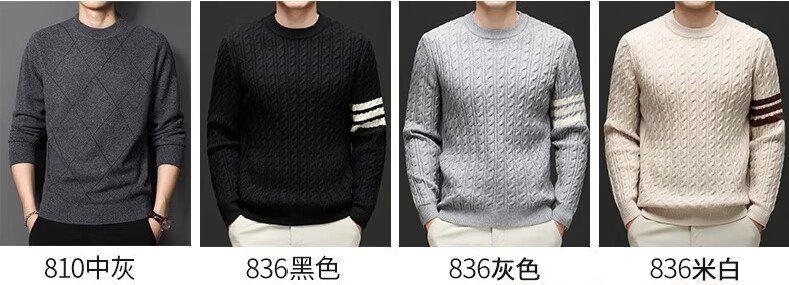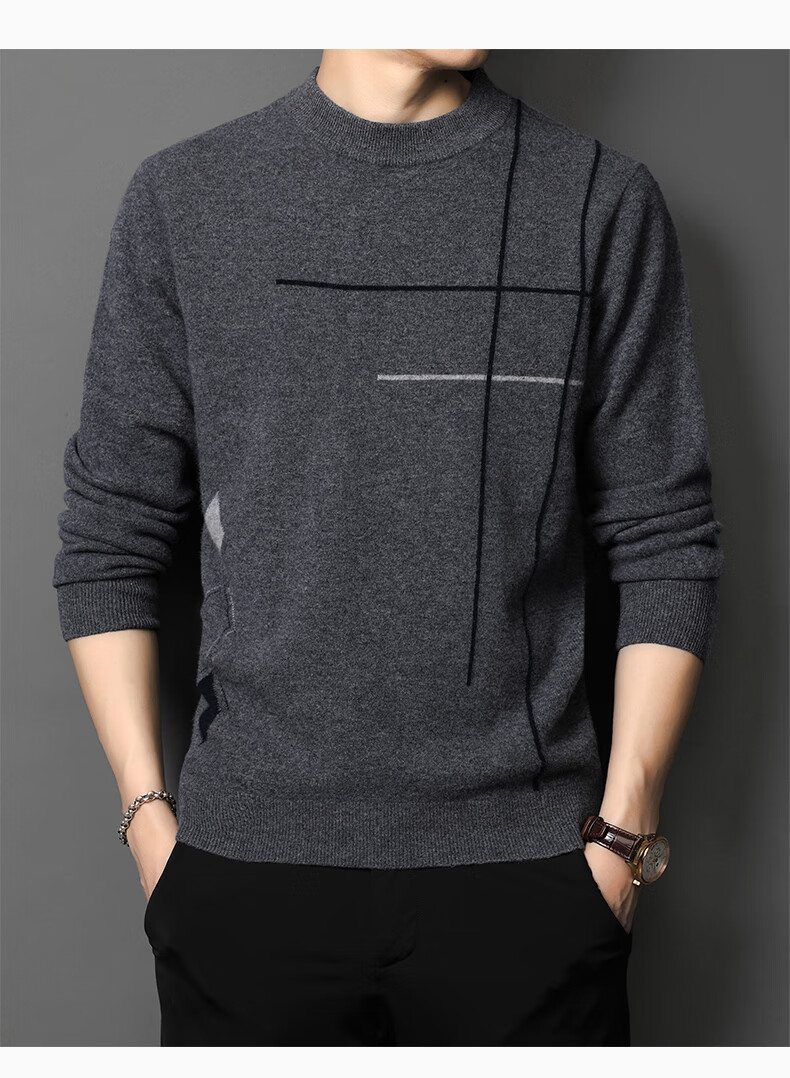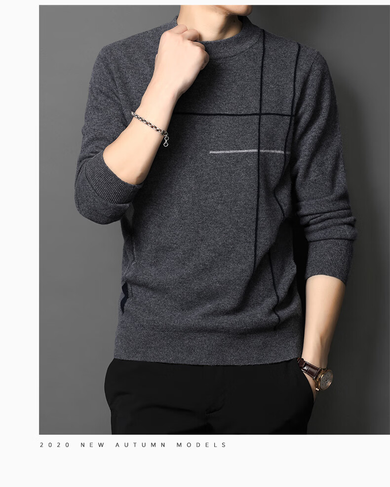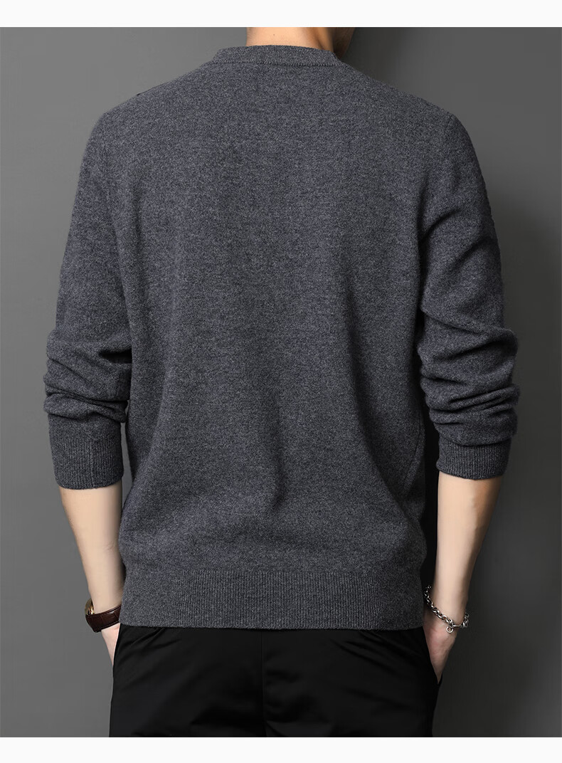 XJSGS international high-end brand wool sweater men's new 2026 autumn and winter thickened round neck sweater knitted bottoming shirt high-end 806 medium gray counter same style winter style M 170