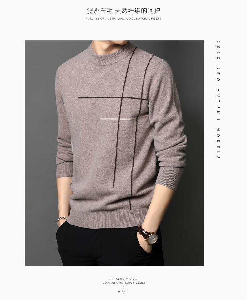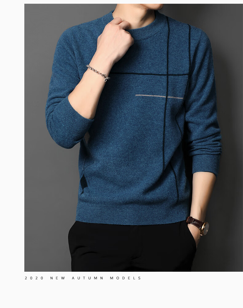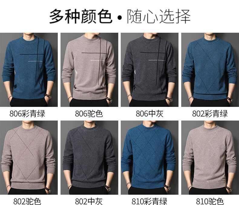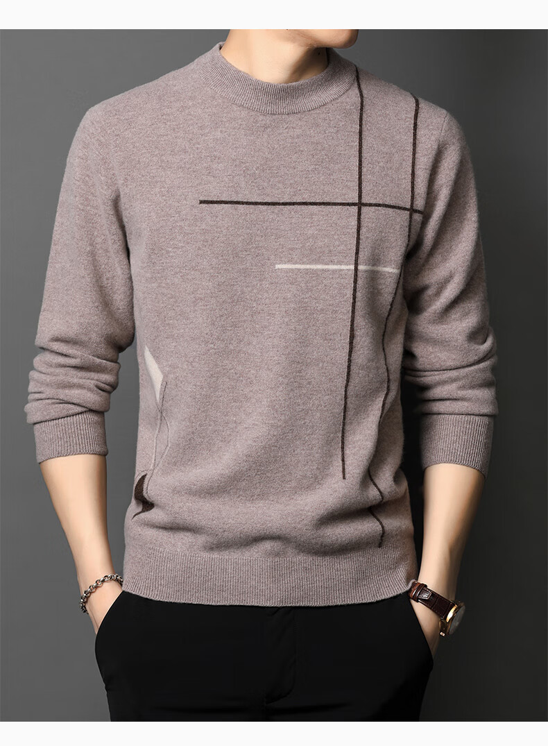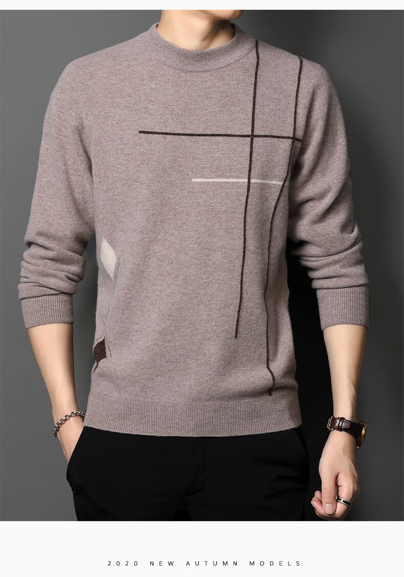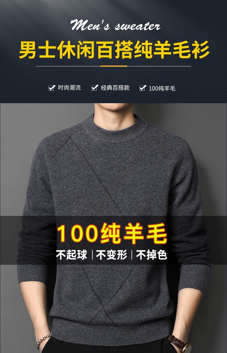 XJSGS international high-end brand wool sweater men's new 2026 autumn and winter thickened round neck sweater knitted bottoming shirt high-end 806 medium gray counter same style winter style M 170