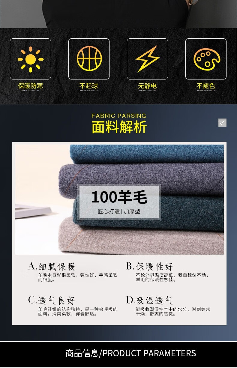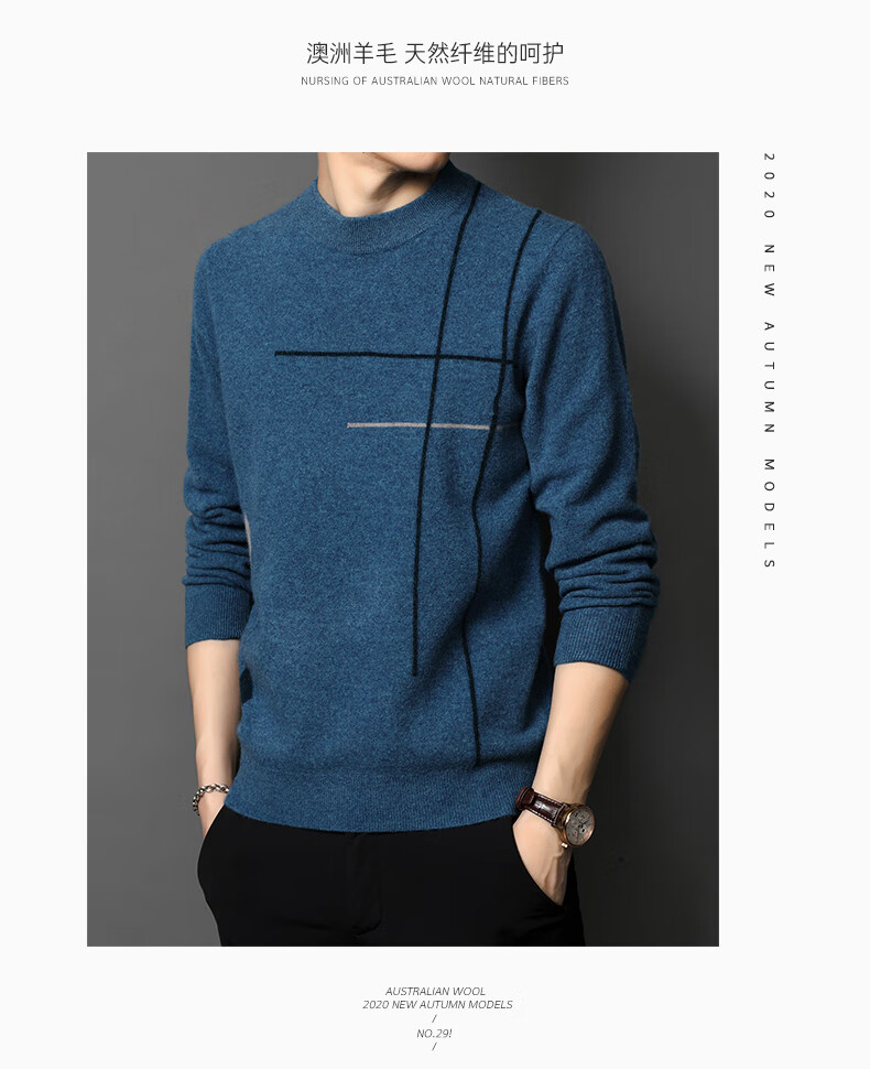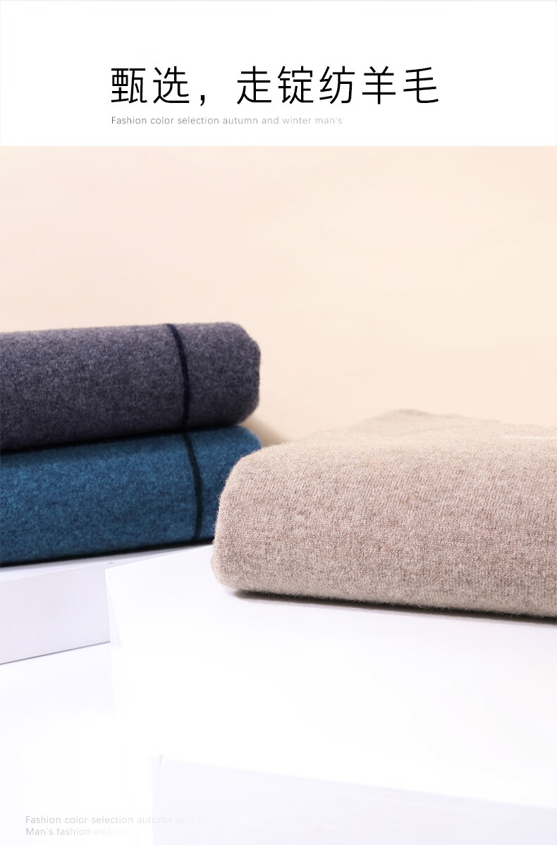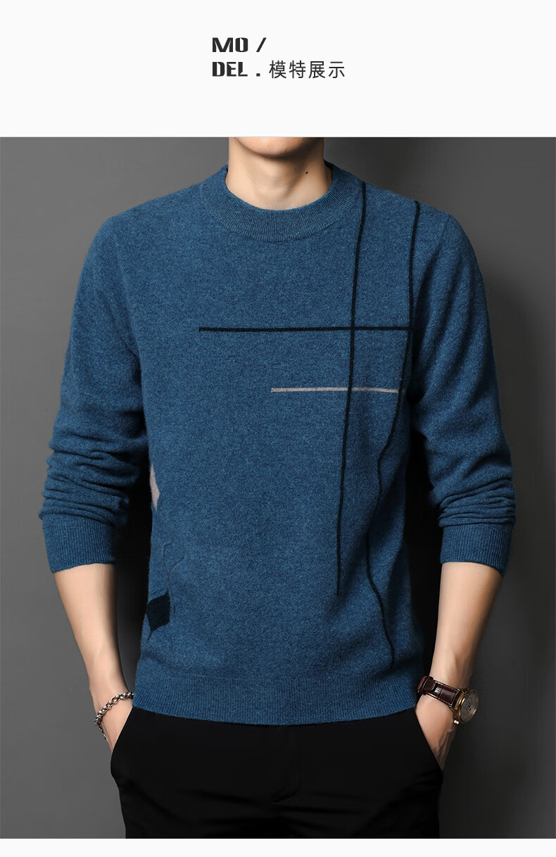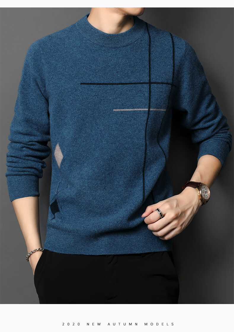 XJSGS international high-end brand wool sweater men's new 2026 autumn and winter thickened round neck sweater knitted bottoming shirt high-end 806 medium gray counter same style winter style M 170