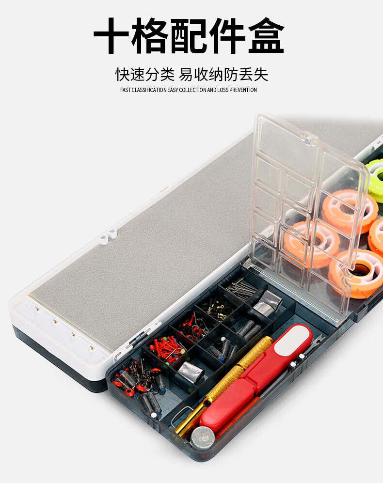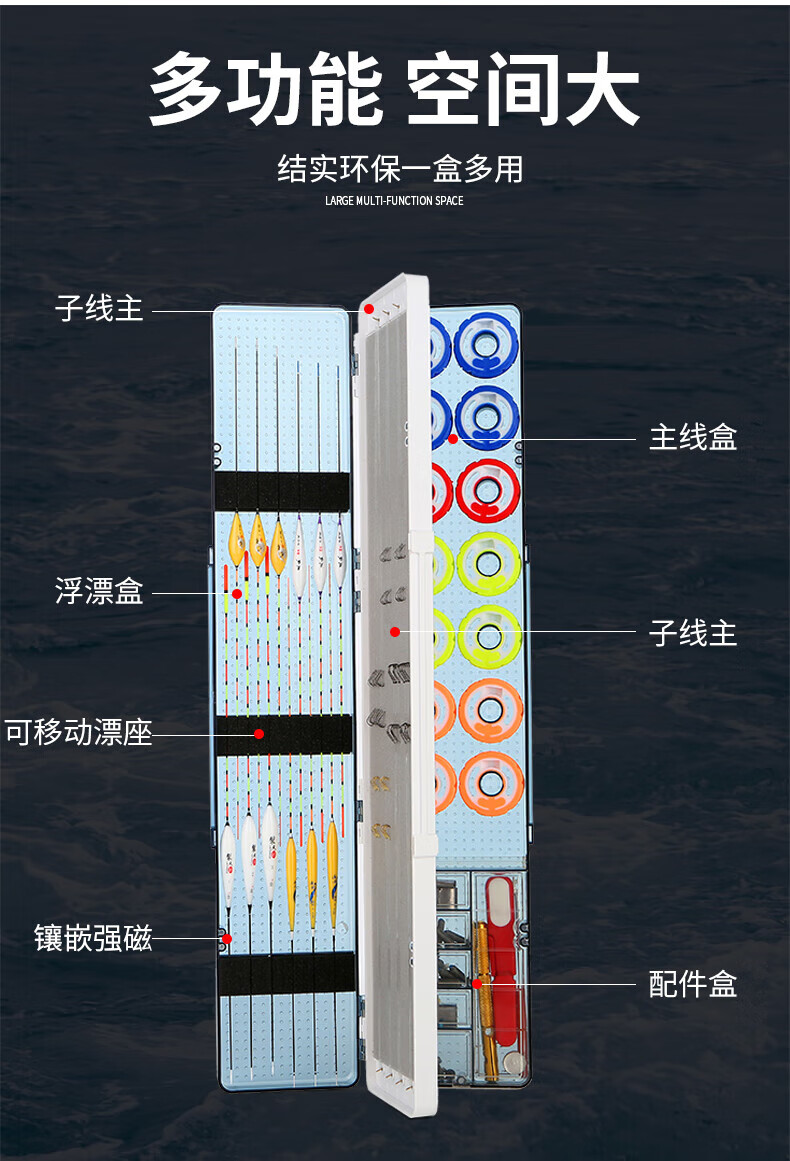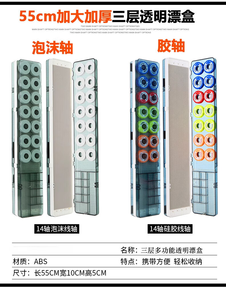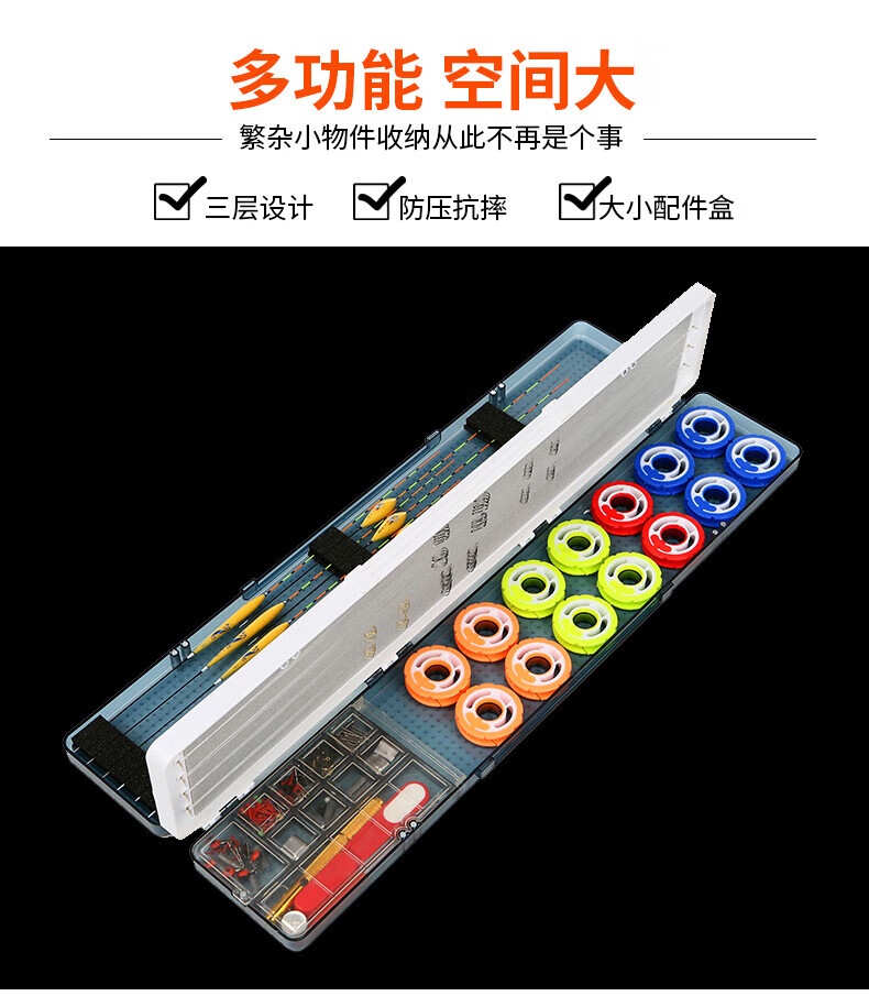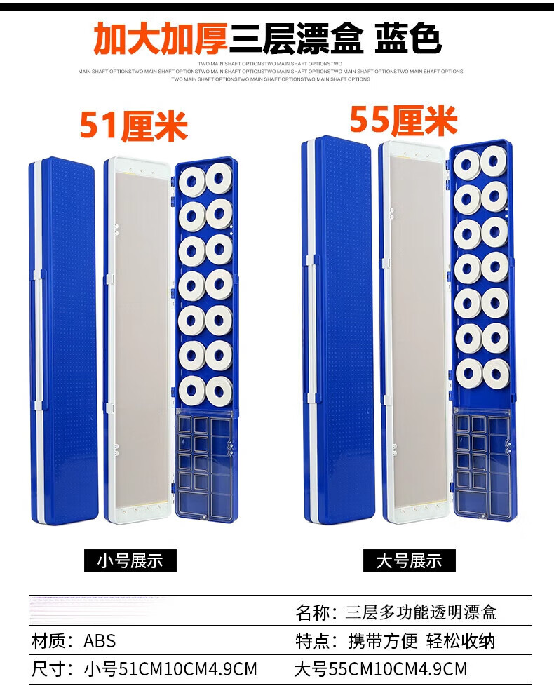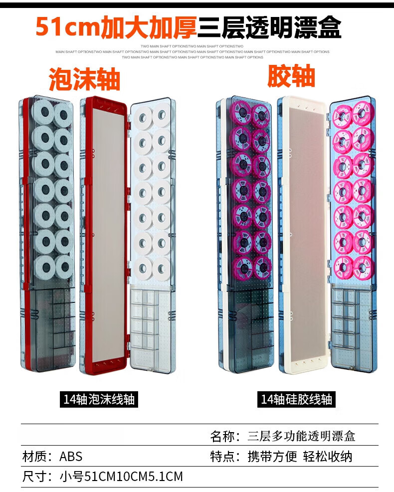 He Jiagong fish float box large capacity multi-functional three-layer three-in-one float fish gear storage box fishing gear supplies main line 55cm (transparent) silicone spool gift pack 1