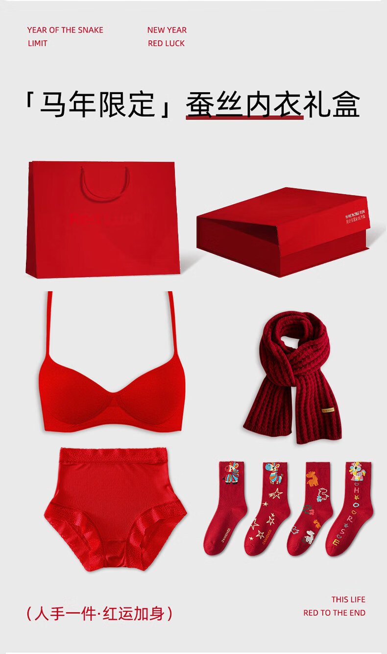 Miss Polly Mulberry Silk Big Red Underwear Set Zodiac Year Underwear Silk Women 2026 Year of the Horse New Year Gift for Girls 6. Zodiac Year Underwear Set 2 Sets + Scarf + 4 Pairs of Horse Year Socks (With Gift Box Gift Bag) S Recommendation 32/70AB