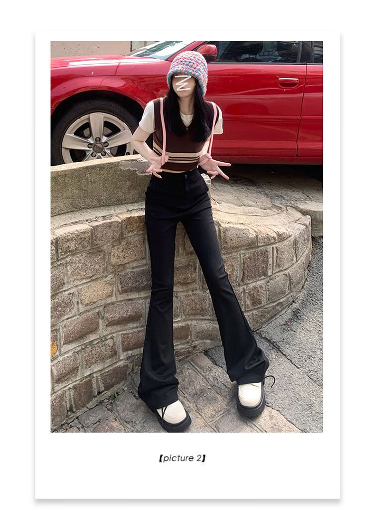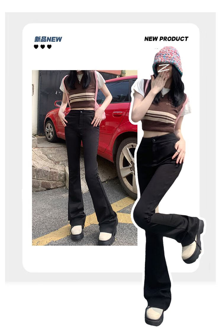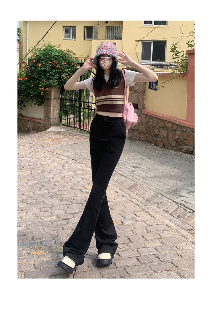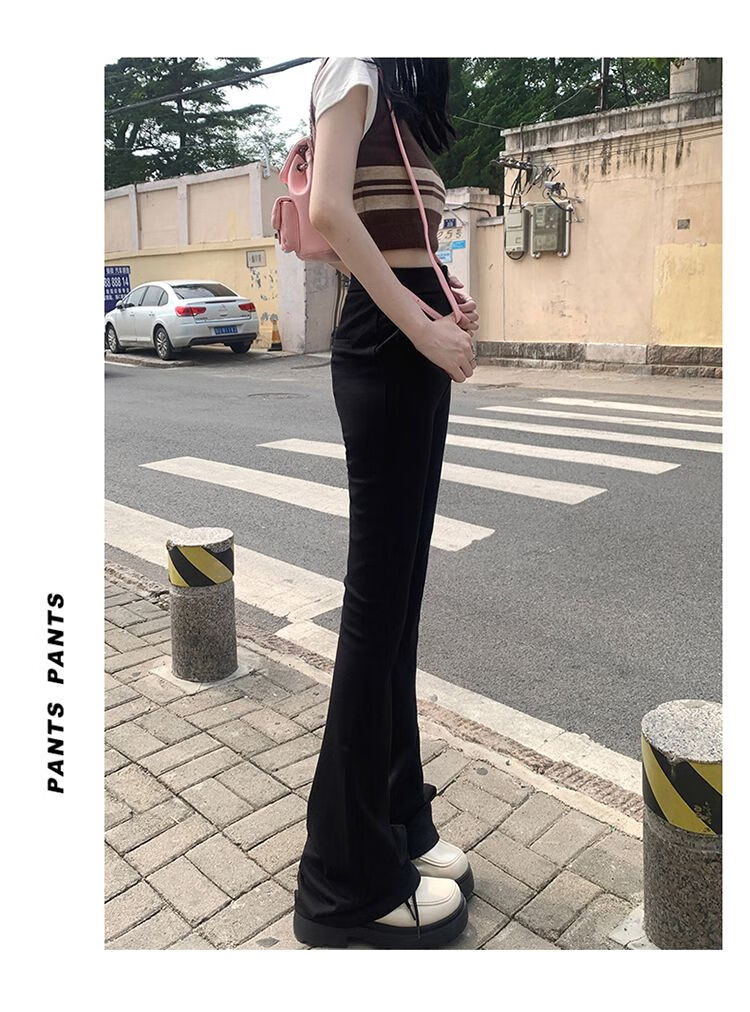 BIENKIMIIYE Black High Waist Flare Pants Women's 2025 Autumn and Winter Straight Casual Slim Elastic Drape Slim Long Suit Pants Black Trousers XS