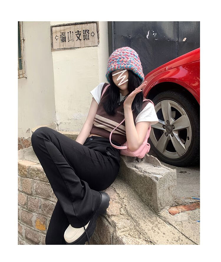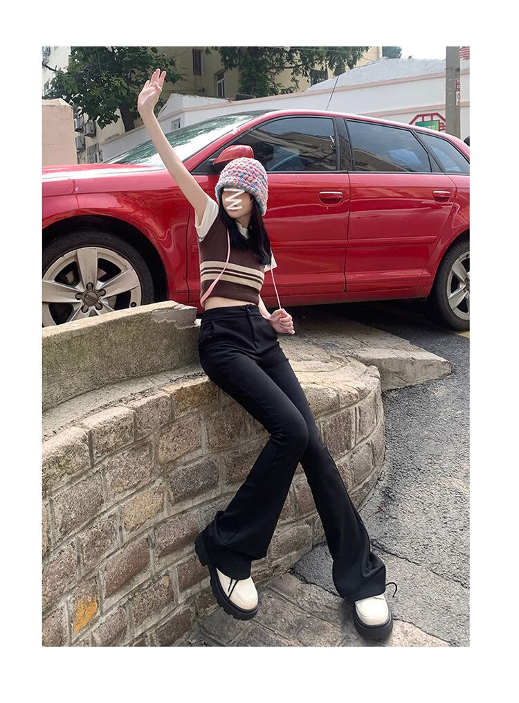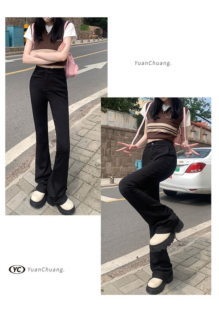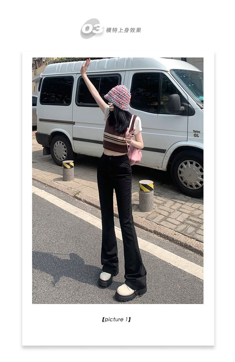 BIENKIMIIYE Black High Waist Flare Pants Women's 2025 Autumn and Winter Straight Casual Slim Elastic Drape Slim Long Suit Pants Black Trousers XS