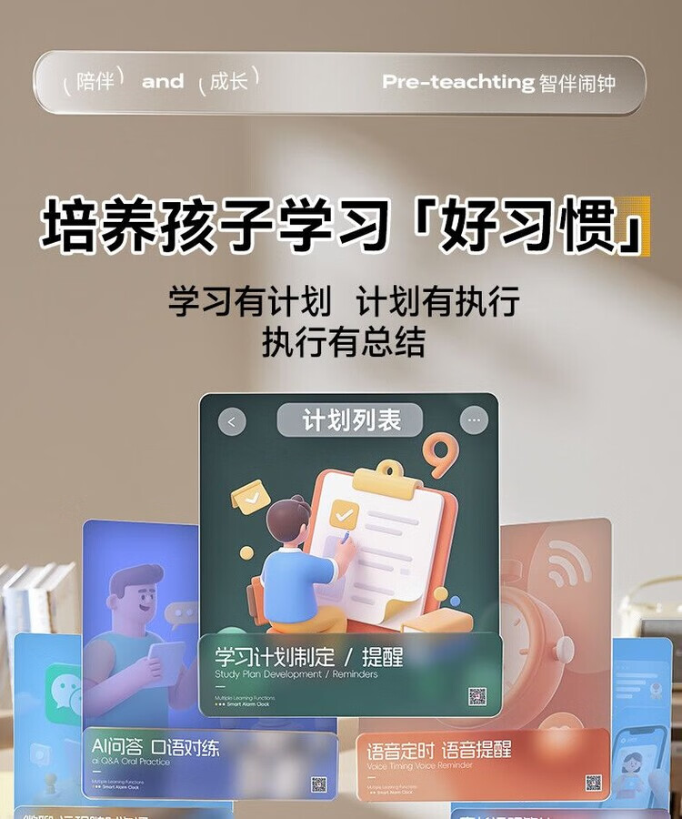 He Jiagong al Time Treasure Robot AI Time Treasure Robot Intelligent Alarm Clock Voice Dialogue Synchronization Textbook Primary School Junior High School Birthday Gift Rechargeable Smart Model + 2.8-inch Touch Screen + Voice Dialogue + Micro Chat Synchronization Primary School/Junior High School/High School Textbook