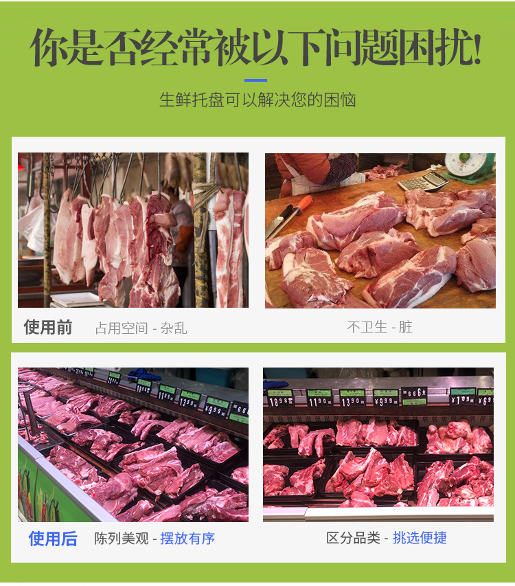 Chujiang Supermarket Pork Tray Fresh Tray Cold Fresh Meat Display Tray Black Plastic Freezer Tray Commercial ABS White 30*60 Rimi*10