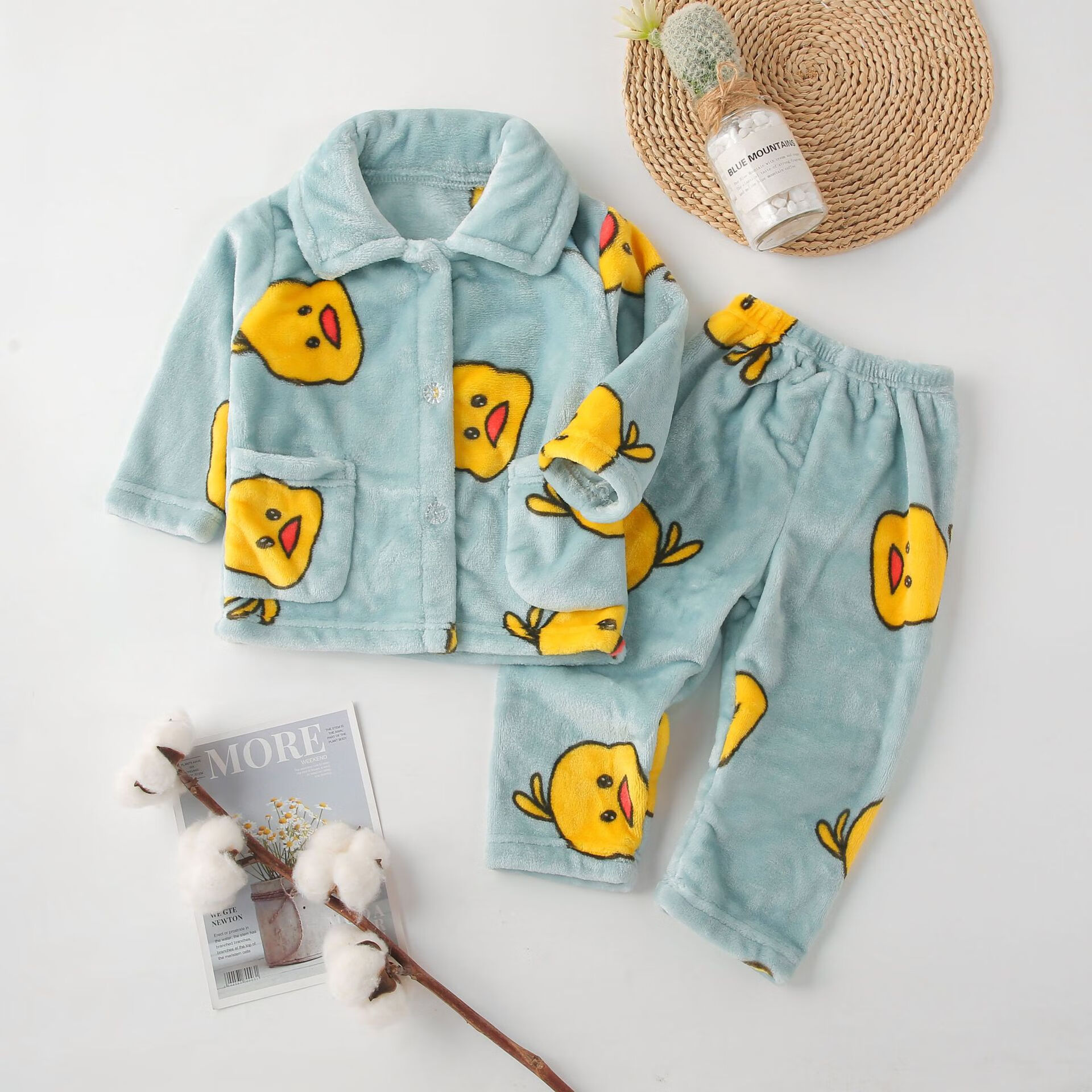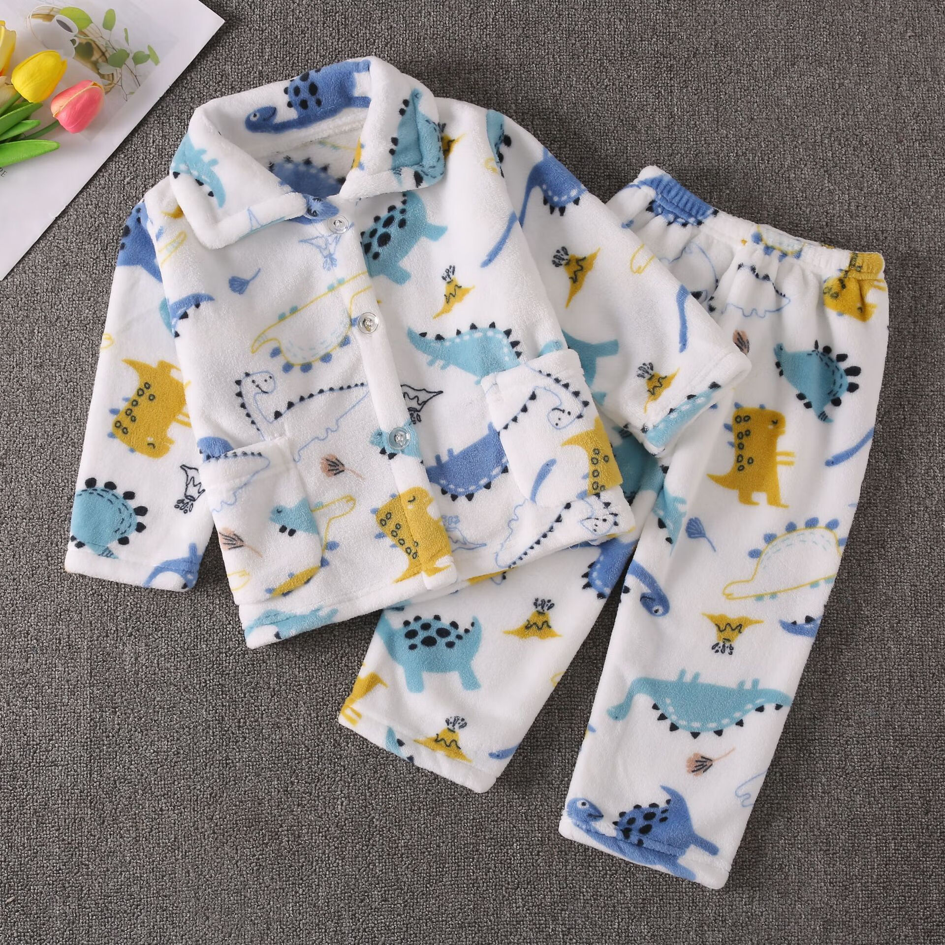 Children's one-piece pajamas dinosaur coral velvet spring and autumn boys and girls flannel cute cartoon animal home clothes Zi Meng 80 90-suitable-90cm