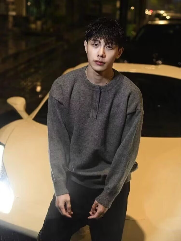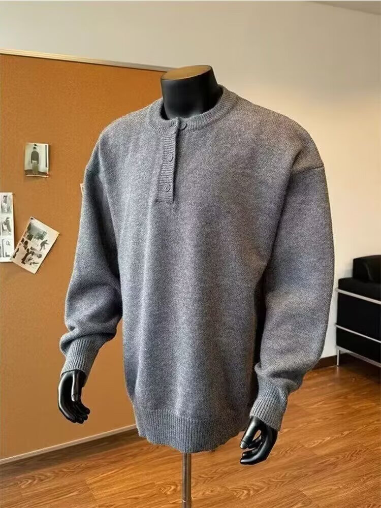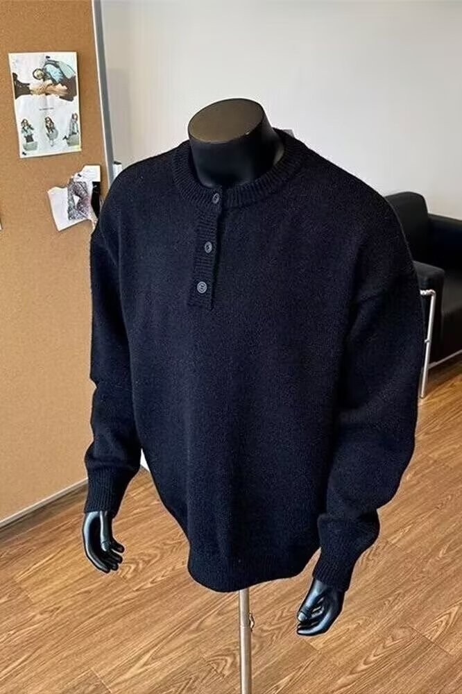 Henry collar sweater men's autumn and winter American style lazy high-end cleanfit old money style knitted bottoming shirt for men black 2XL recommended 140-160Jin Jin equals 0.5 kg