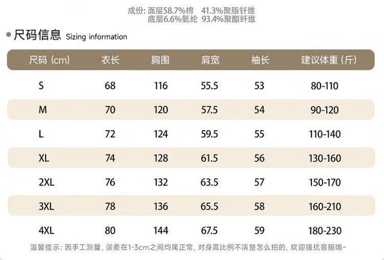 China (cm) 165 / 88-90 170 / 96-98 175 / 108-110 180 / 118-122 185 / 126-130