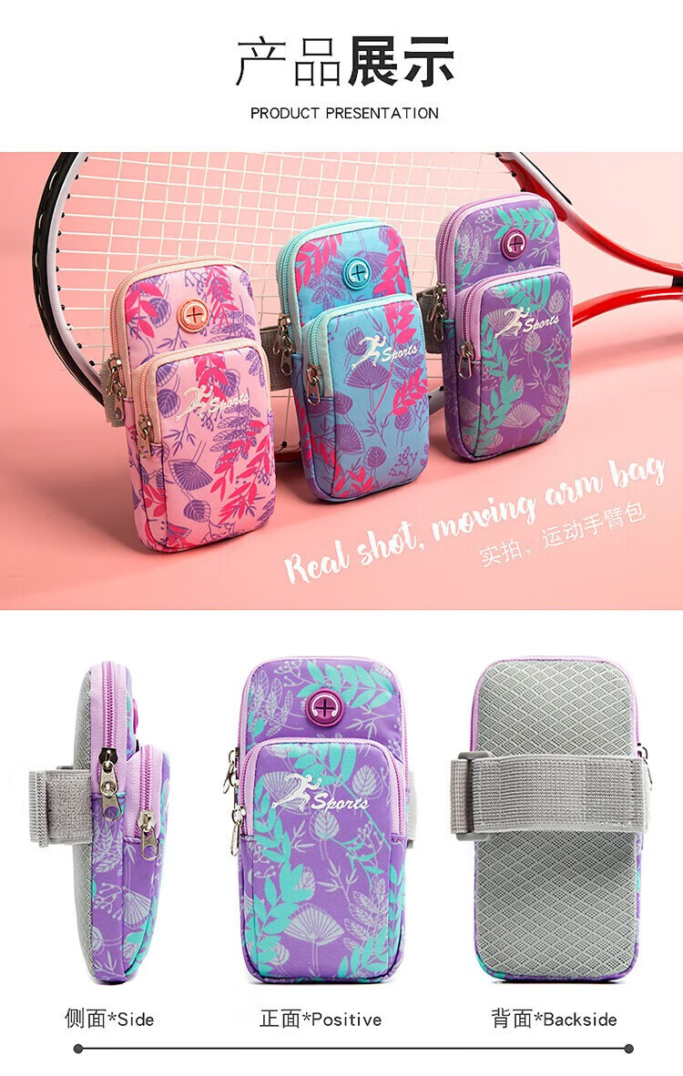 Complete mobile phone arm bag, arm and wrist dual-purpose bag for women, summer sports armband, running bag, small bag for keys, B062 brilliant purple small size