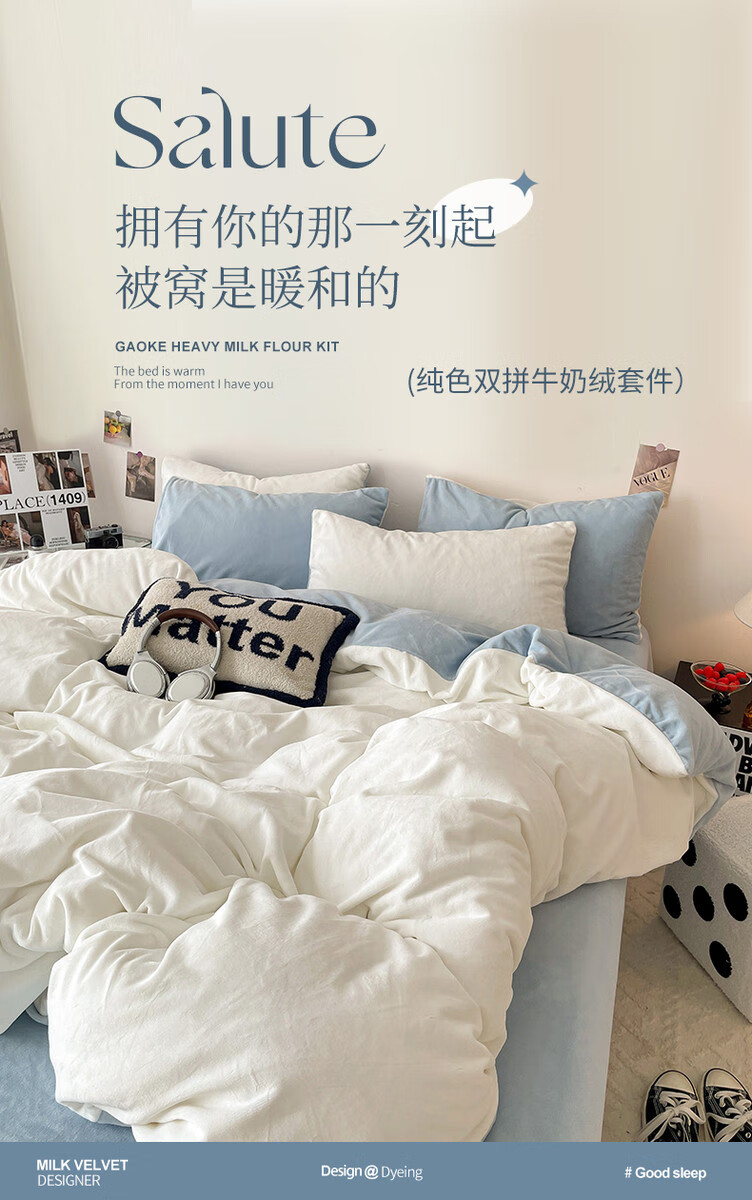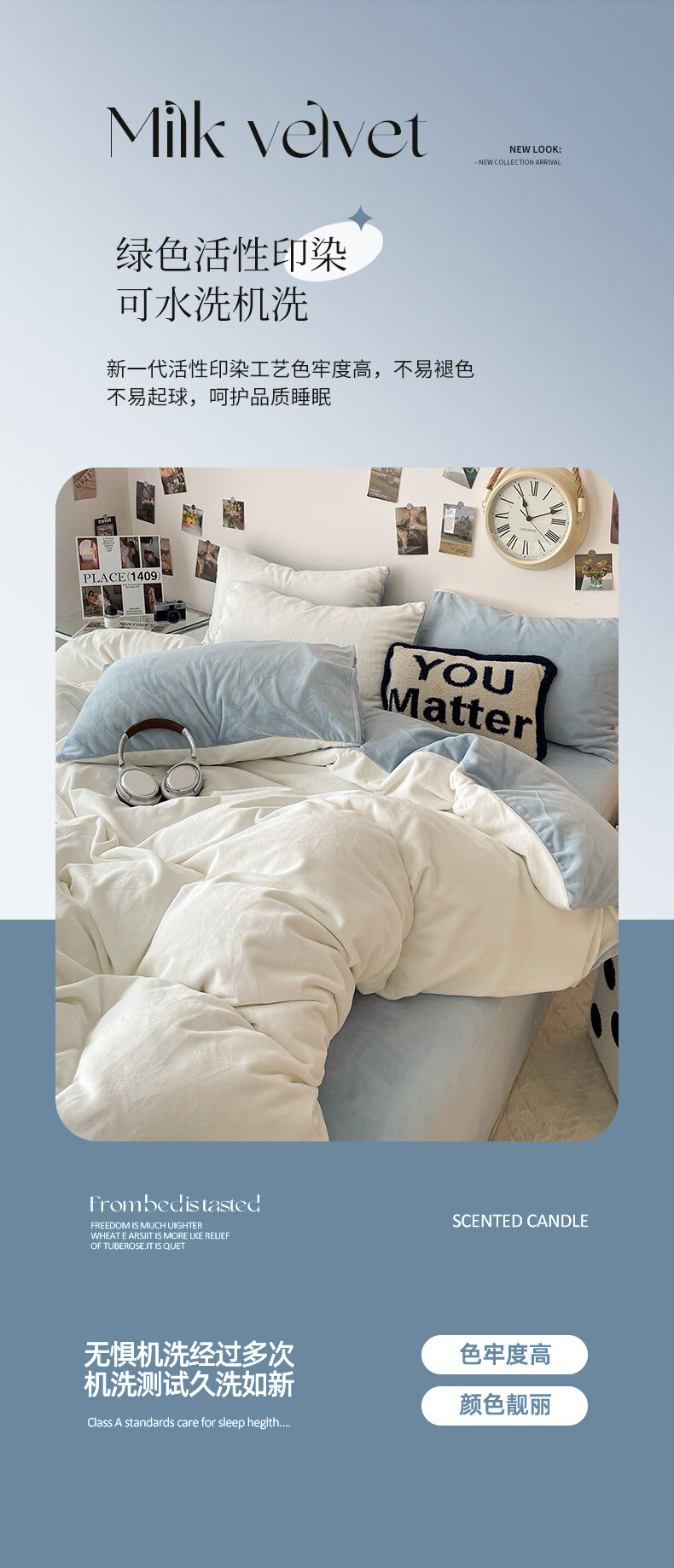 Fantasy Winter Thickened Milk Velvet Duvet Cover Single Piece 150x200x230 Single and Double Flannel Coral Suede Quilt Cover Upgraded Model-Milk White + Baby Blue Antistatic Shedding for Mothers and Infants 150x200cm Duvet Cover Single Piece Double-sided Velvet for Double Warmth