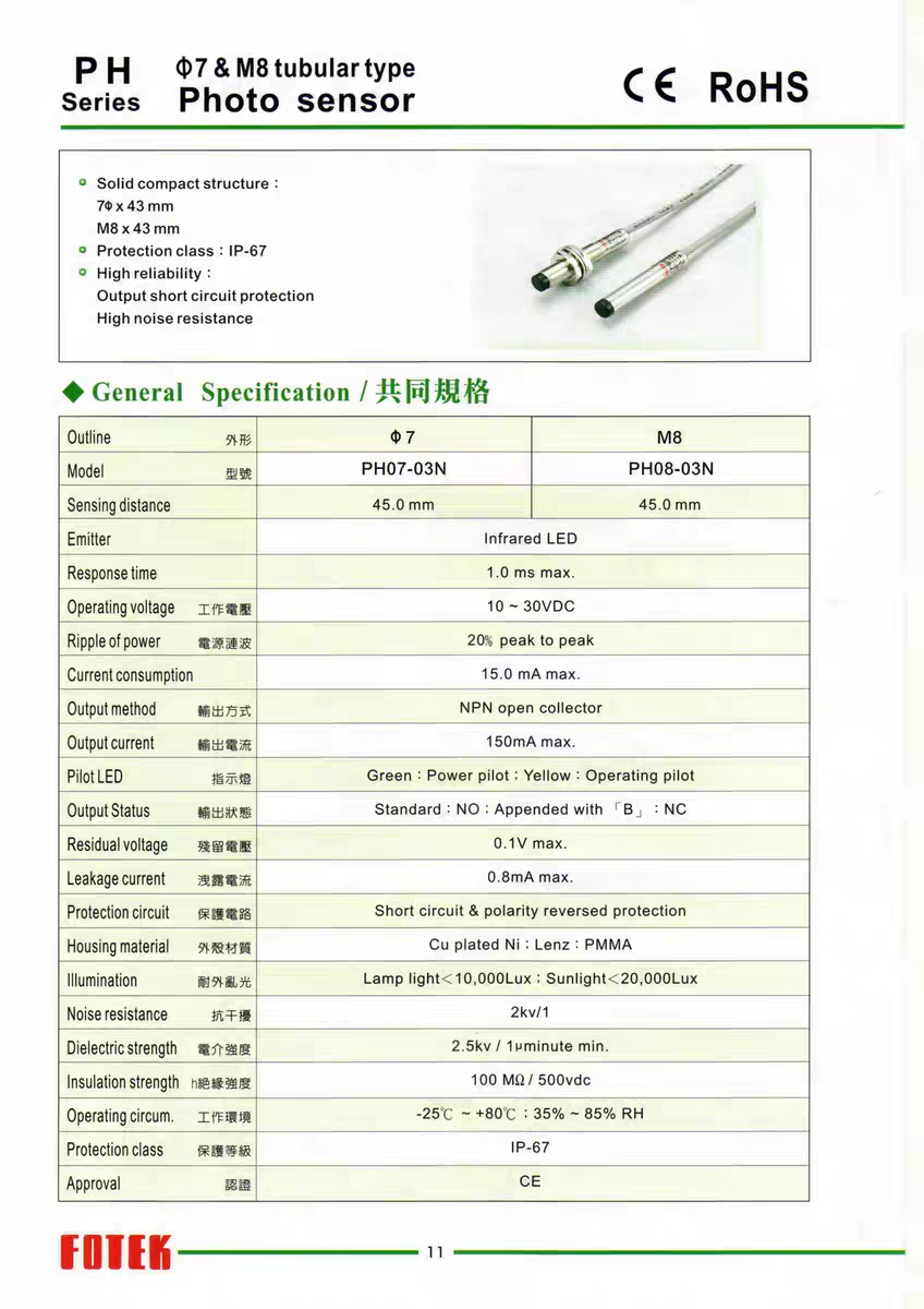 Original Taiwan Yangming FOTEK photoelectric switch PH08-03N PH07-03N sensor one false penalty ten PH08-03n