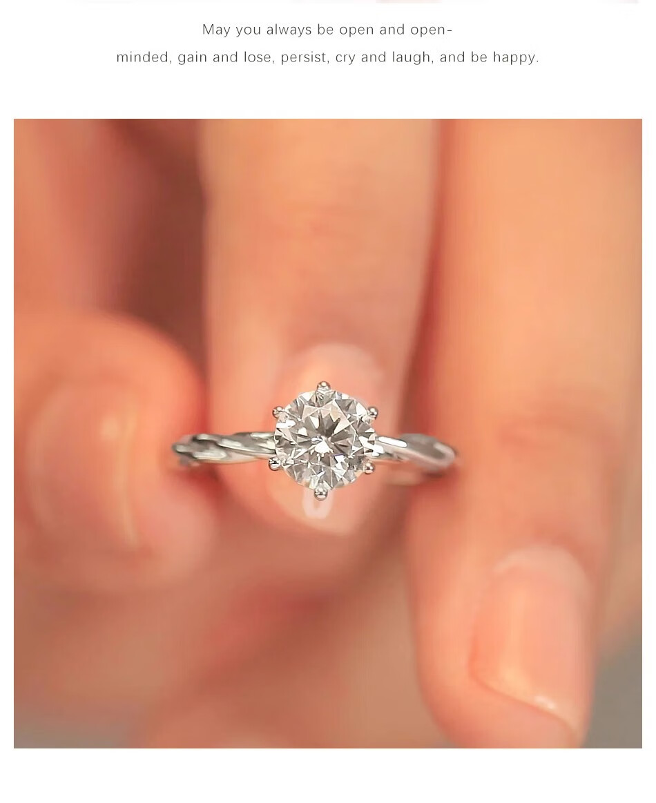 DR Valentine's Day gift DRdr1 carat moissanite diamond ring sterling silver ring female design gift for girlfriend and lover one carat silver white size 10_(_finger circumference 49-50mm)