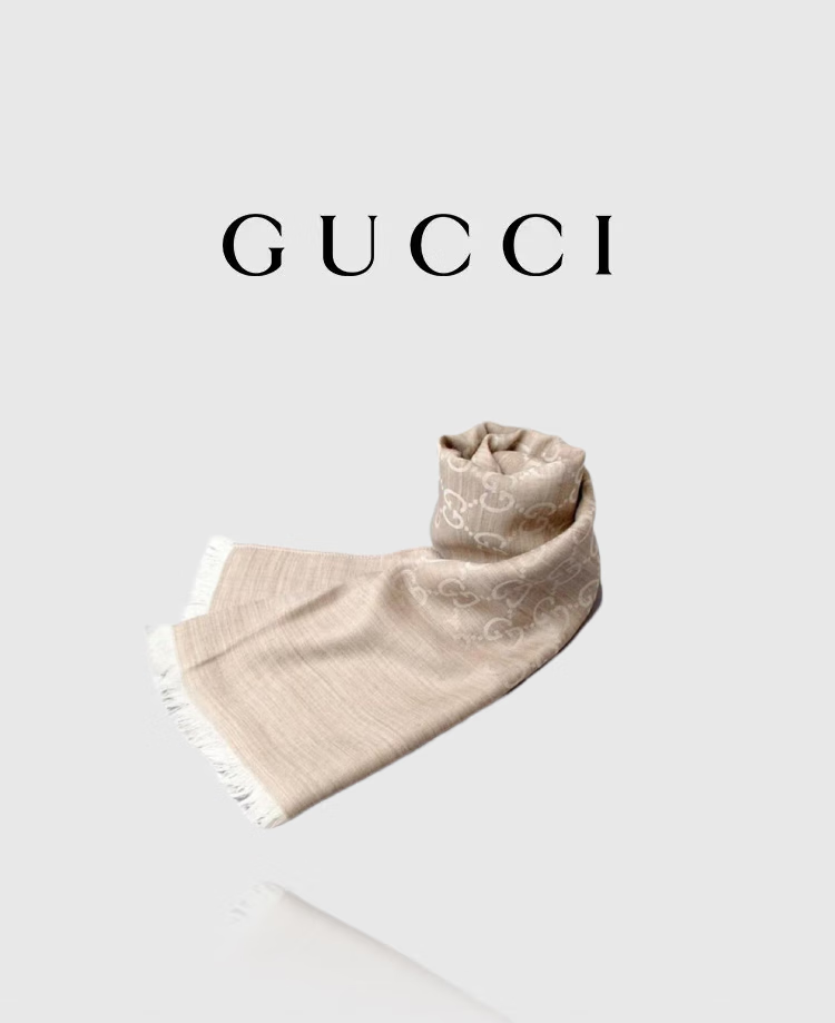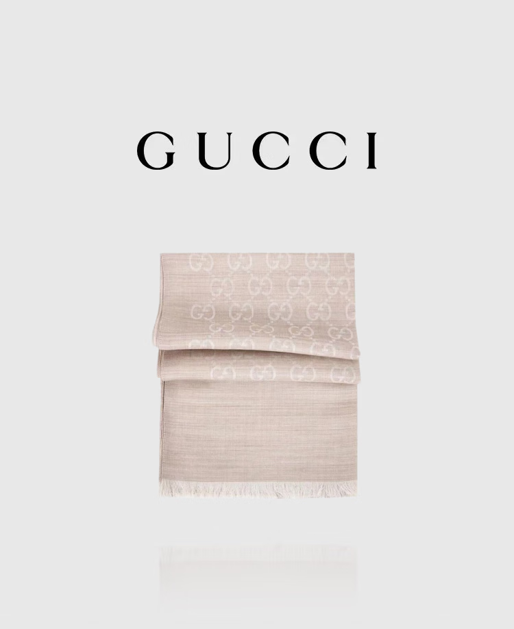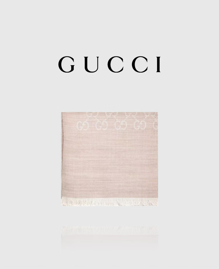 Gucci (GUCCI) double G double-sided woven floral tassel shawl wool scarf couple model light khaki light luxury 165904 light khaki
