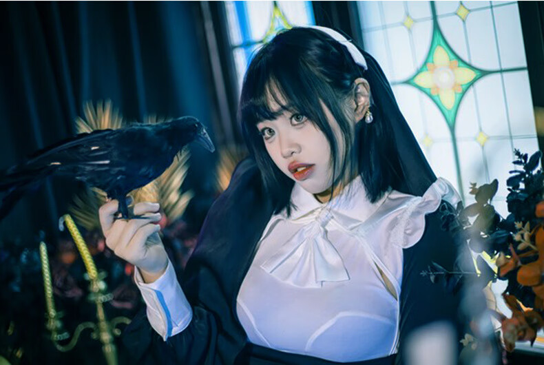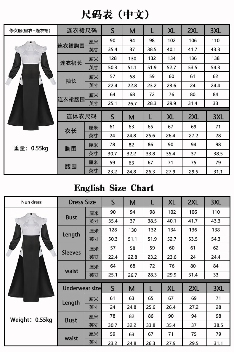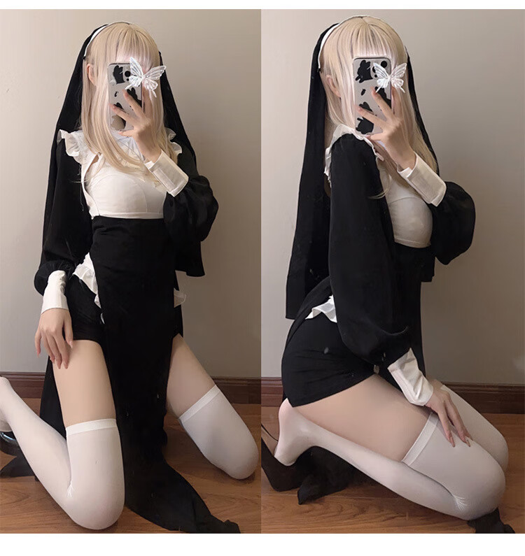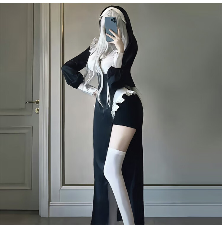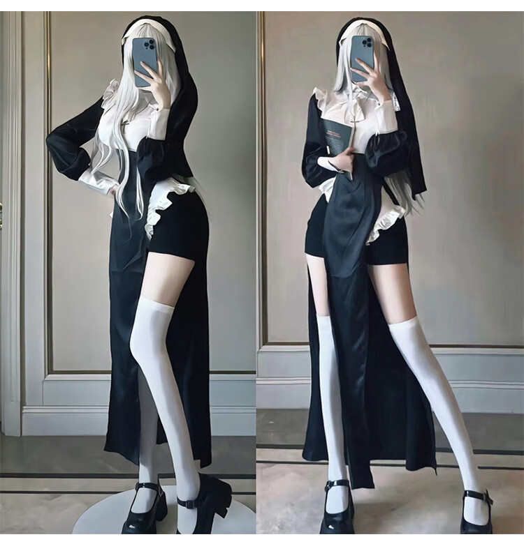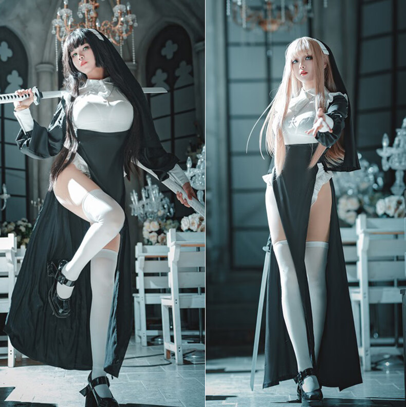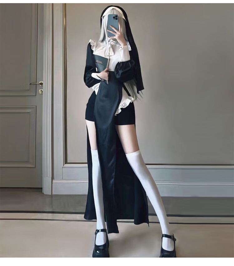 Nun cos clothing tight style Halloween sexy transformation female costume nun cross-dressing COSPLAY costume wig nun (dress + jumpsuit + headscarf + safety pants + cross necklace + white S