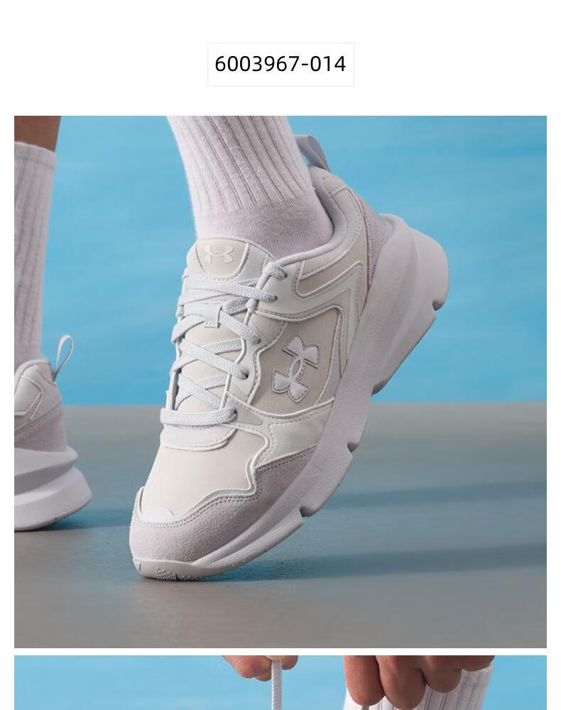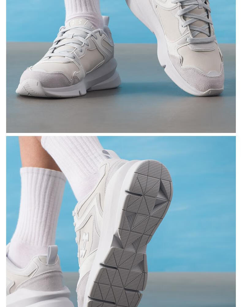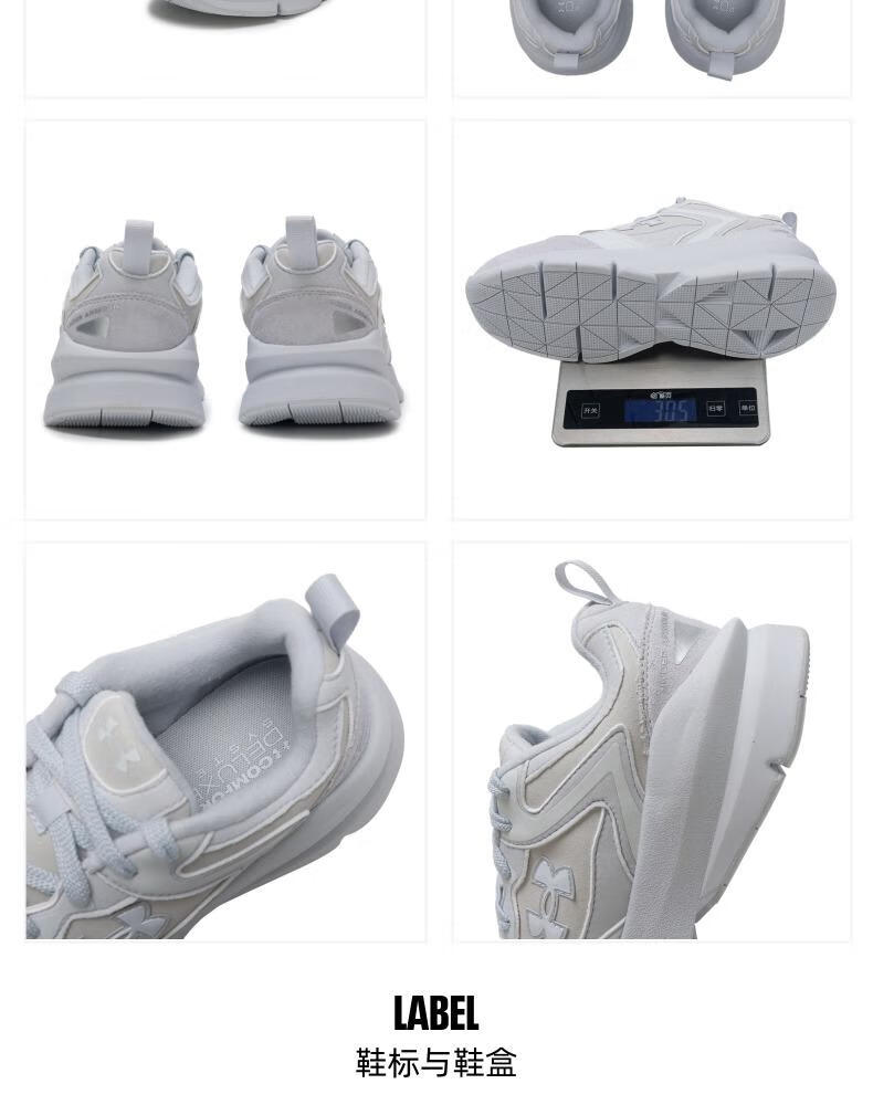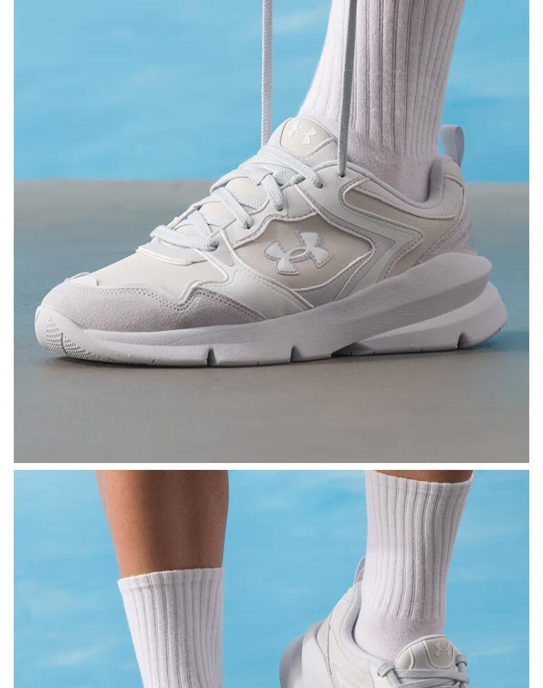 Under Armor sports shoes for men and women, 2025 new couple style fashionable casual shoes, autumn and winter daily training running shoes 6003967-014 white/grey recommended for freshman 44.5