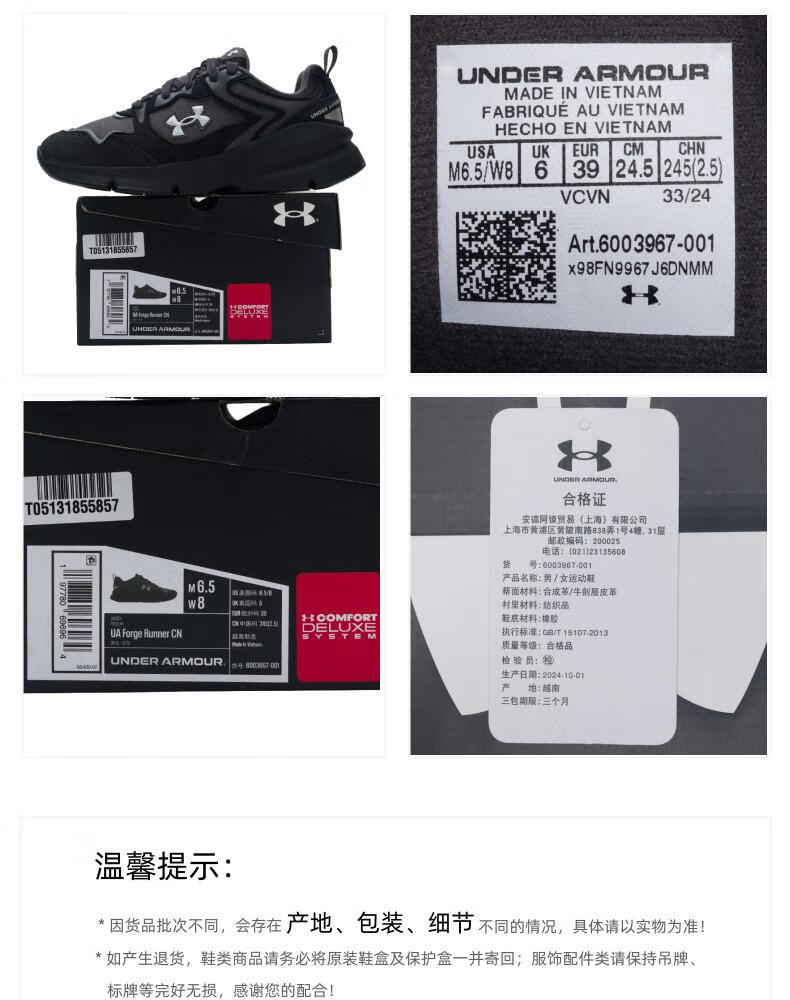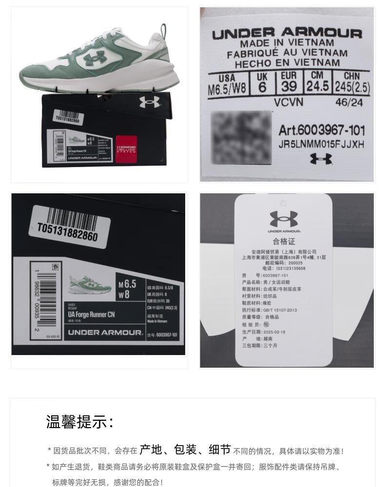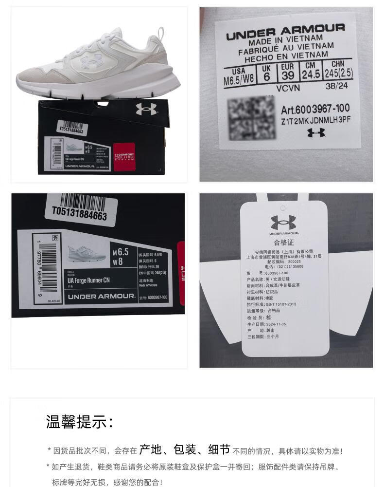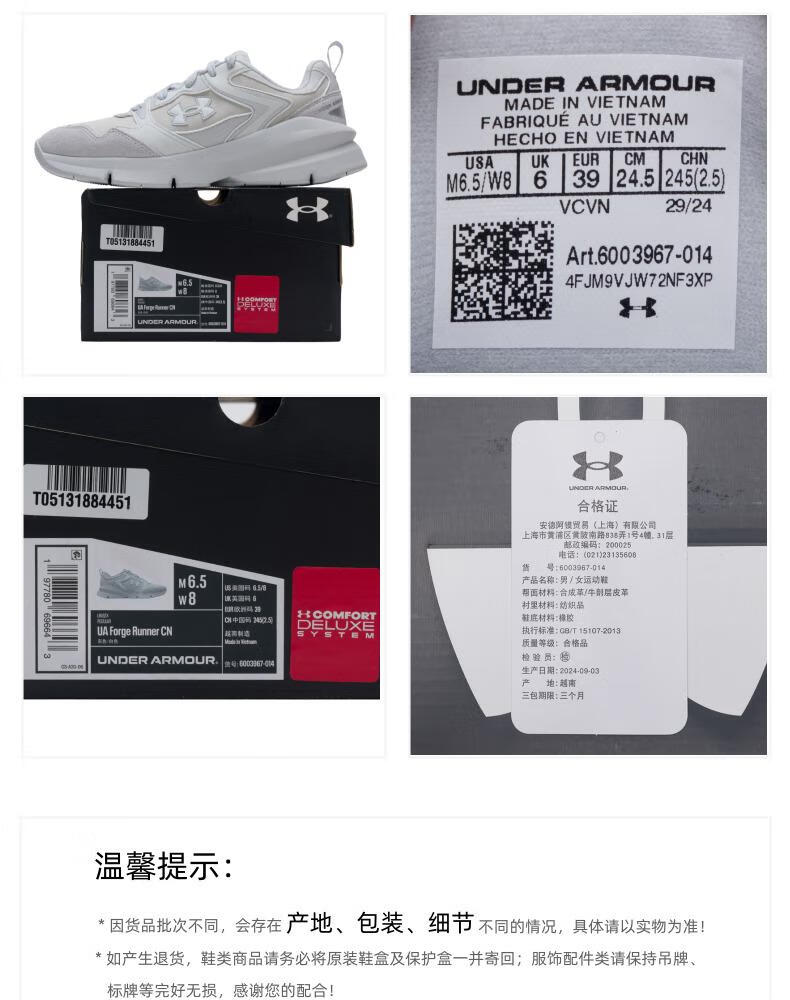 Under Armor sports shoes for men and women, 2025 new couple style fashionable casual shoes, autumn and winter daily training running shoes 6003967-014 white/grey recommended for freshman 44.5