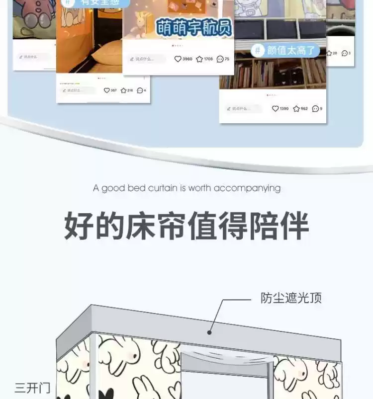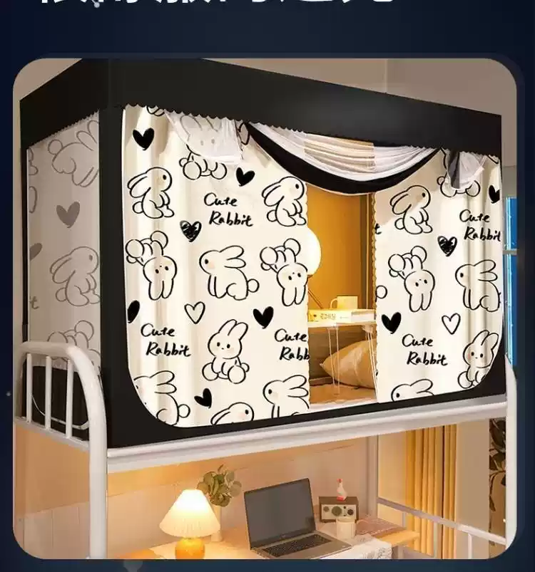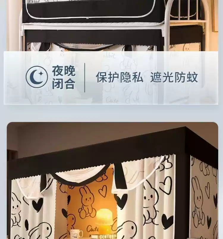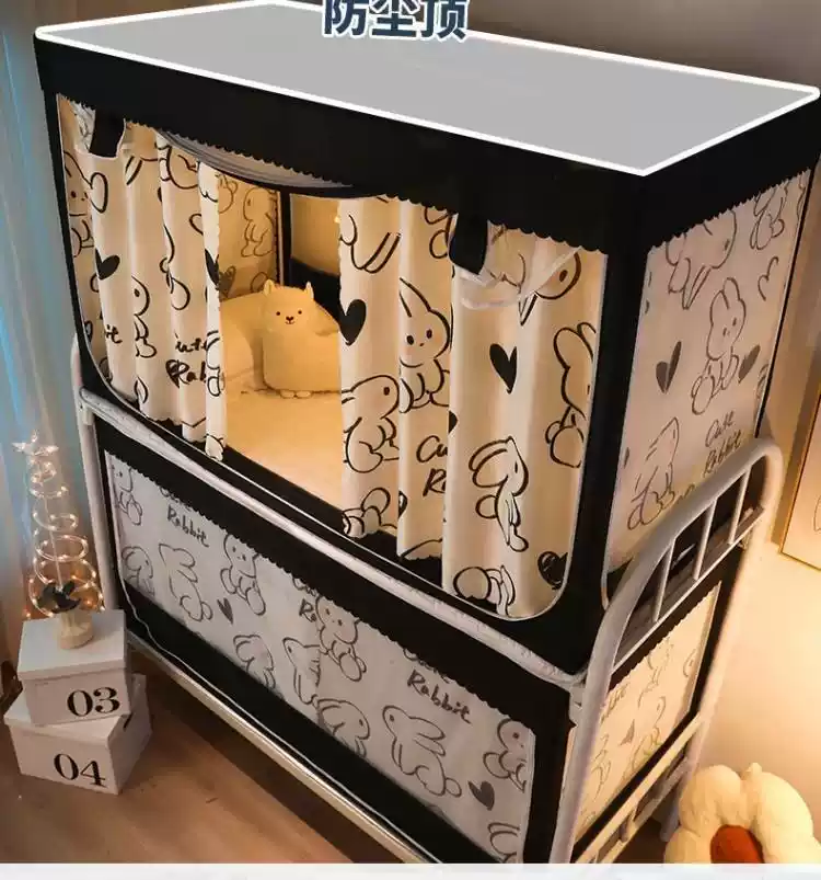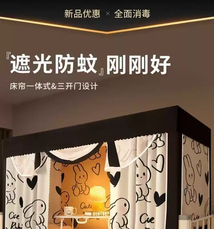 Fantasy Winter Indoor Warm Tent Thickened Windproof, Coldproof, Breathable and Insulated Student Dormitory Bed Flooring Manufacturer Purple Bear Mosquito Net + 2 Bed Curtains + Top Belt Bracket - Width 90 Length 190 Height 110 - Painted Bracket Three Doors