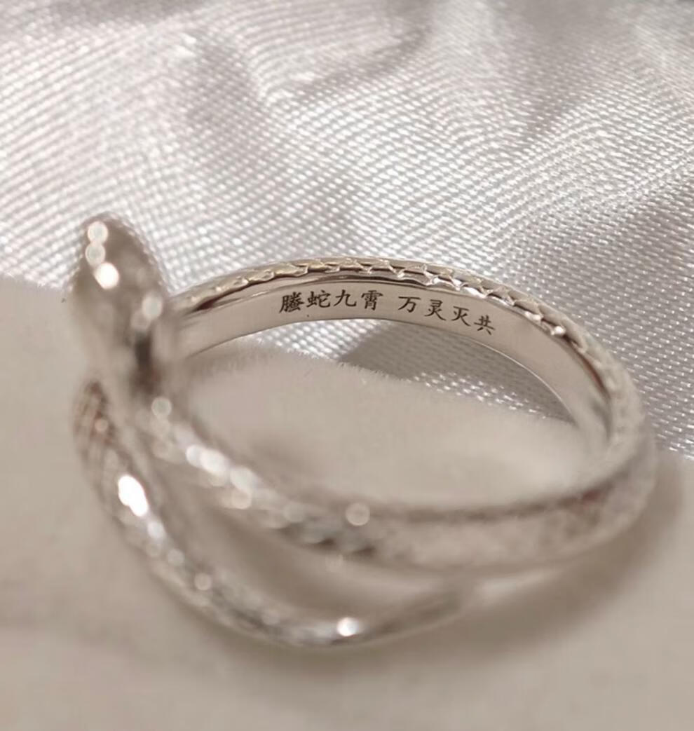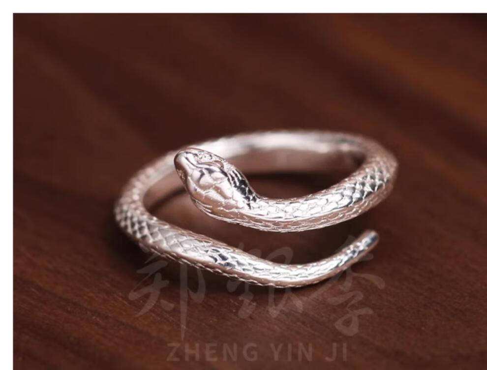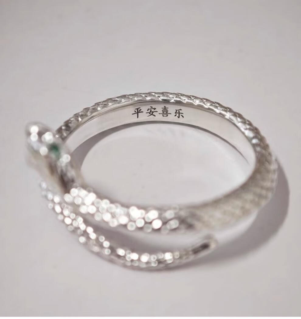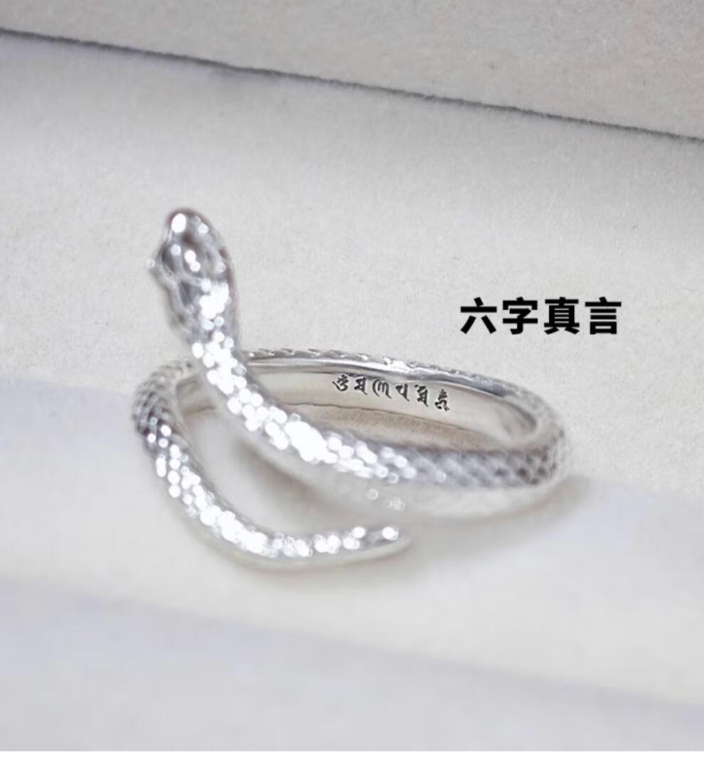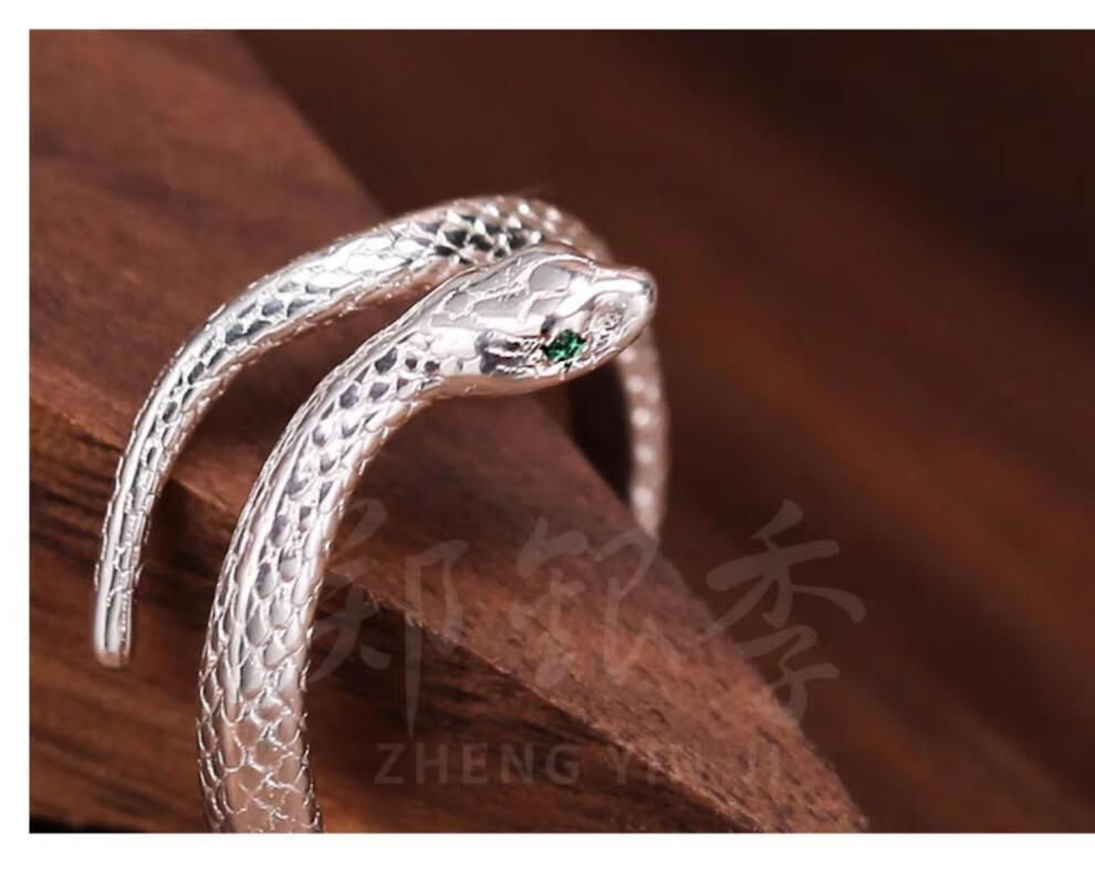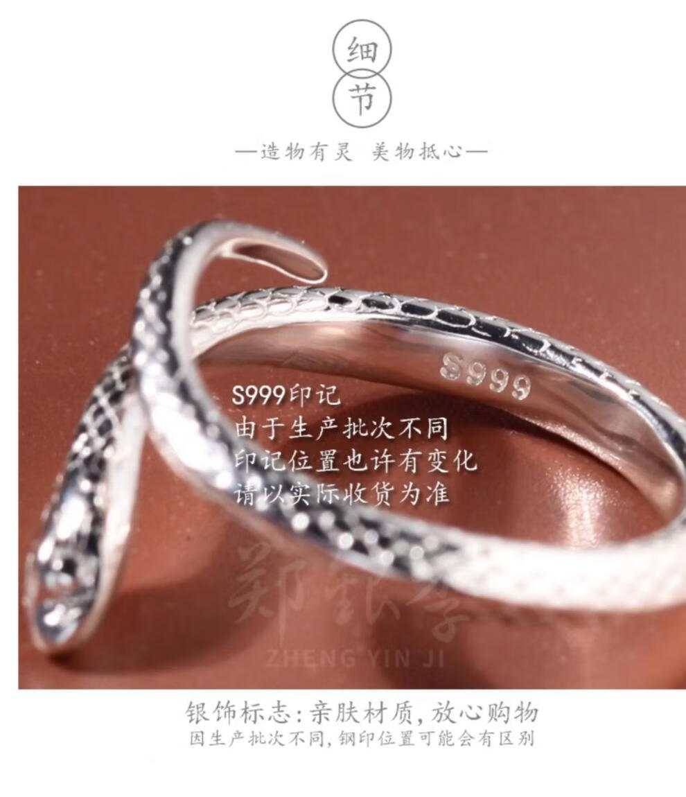Chow Tai Fook S999 solid silver snake sterling silver ring men's and women's tail ring small snake couple ring birth year pair ring gift engraving, men's fingers are thicker, suitable for extra large size - snake eyes 2