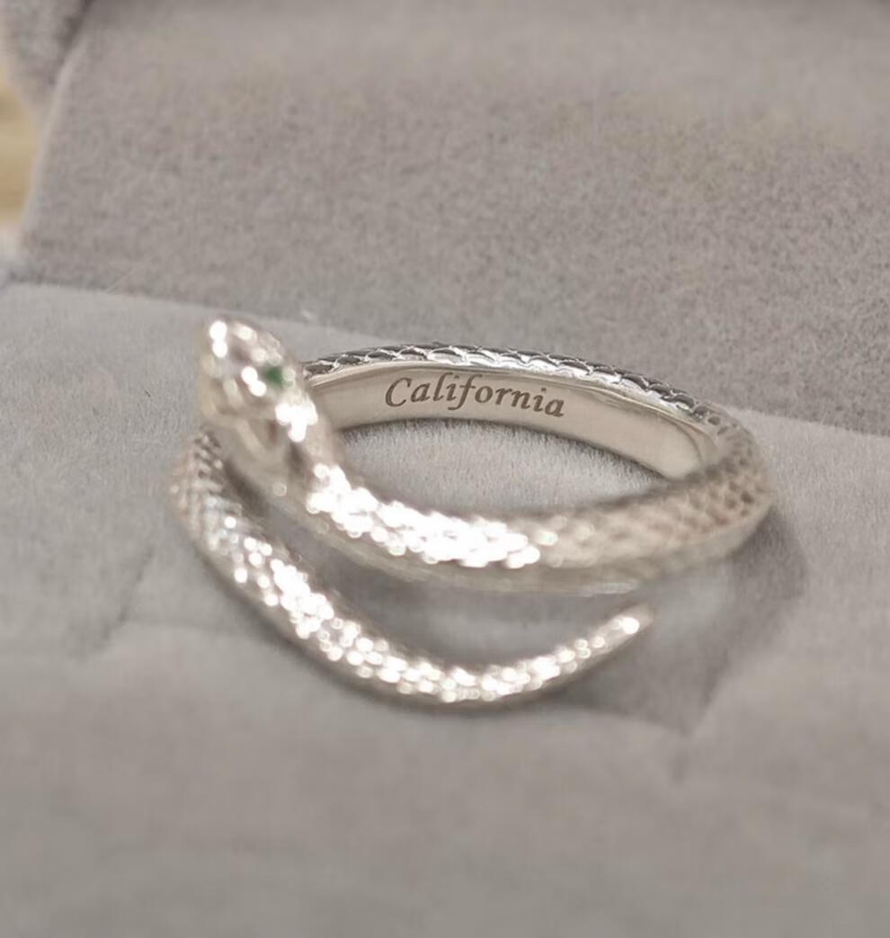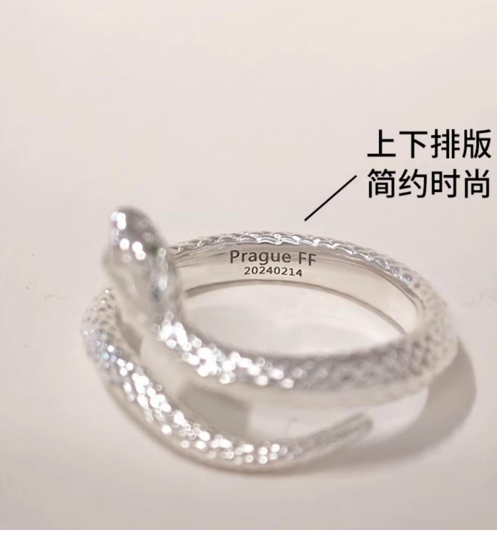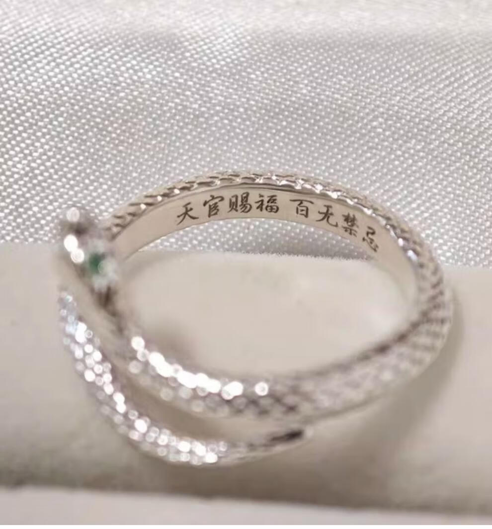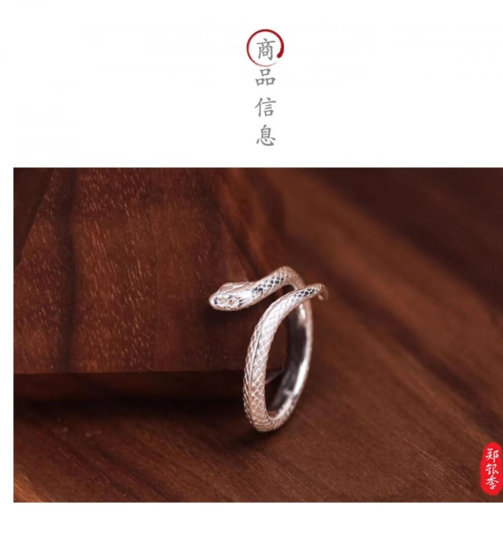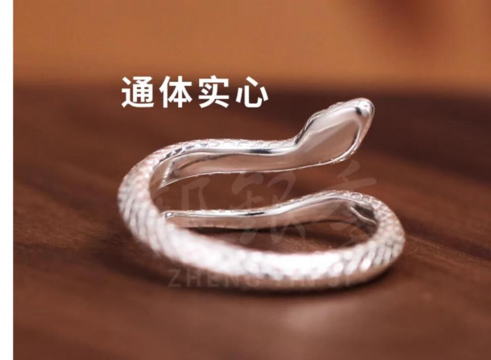 Chow Tai Fook S999 solid silver snake sterling silver ring men's and women's tail ring small snake couple ring birth year pair ring gift engraving, men's fingers are thicker, suitable for extra large size - snake eyes 2