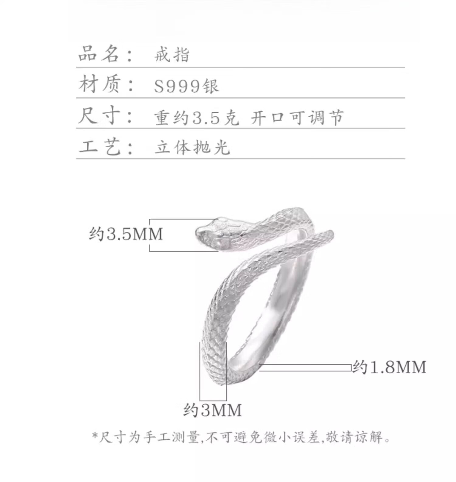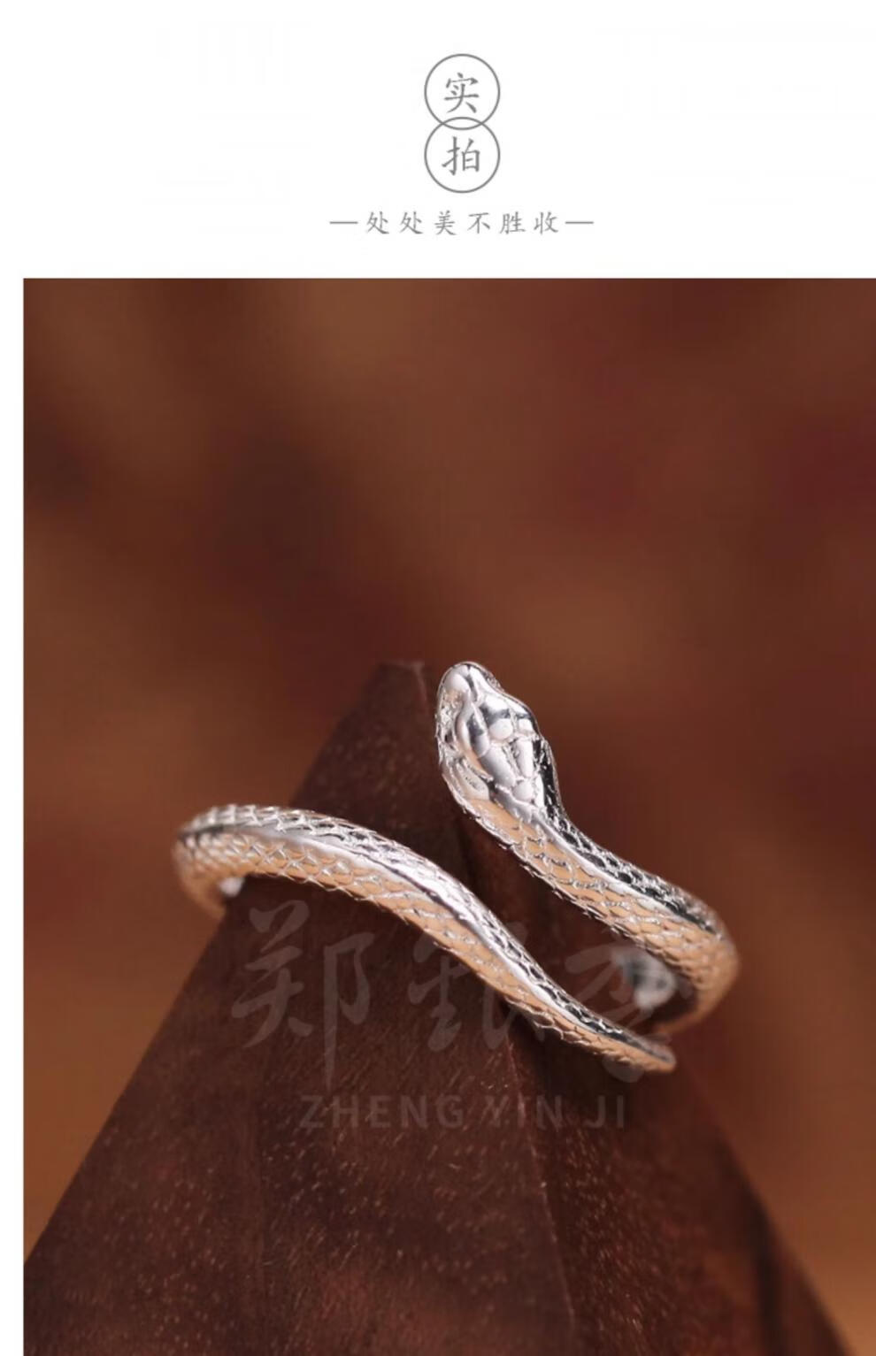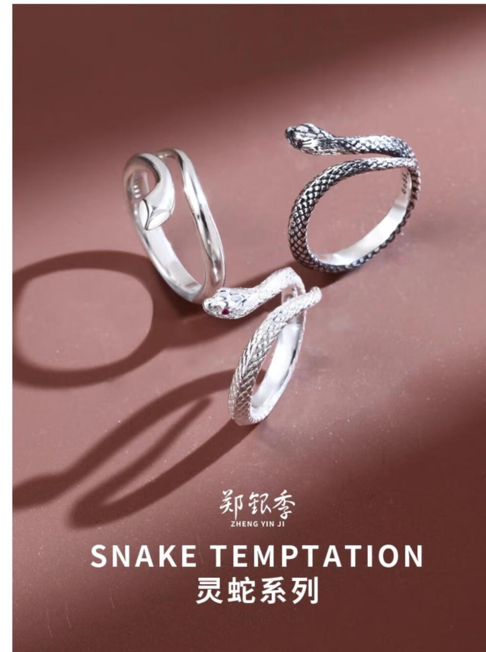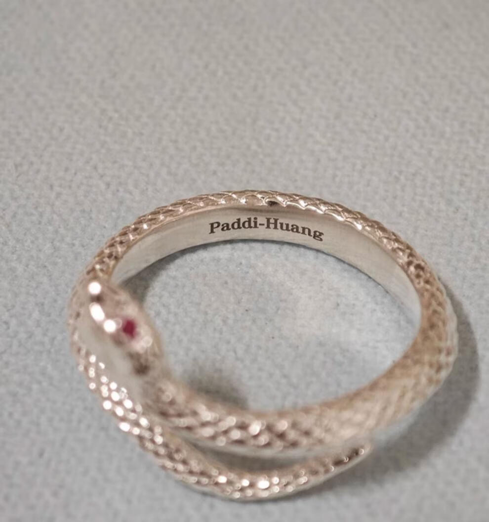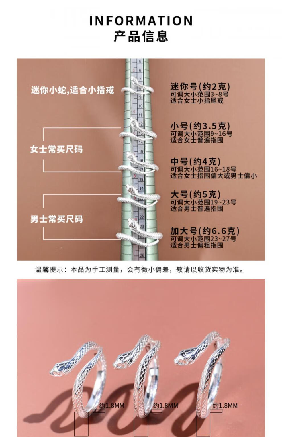 Chow Tai Fook S999 solid silver snake sterling silver ring men's and women's tail ring small snake couple ring birth year pair ring gift engraving, men's fingers are thicker, suitable for extra large size - snake eyes 2