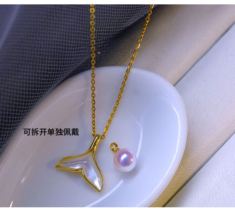 Floating lotus seawater pearl pendant clavicle chain mermaid tail necklace will be yours for the rest of my life Style 1 with chain a 7 points 5-8mm