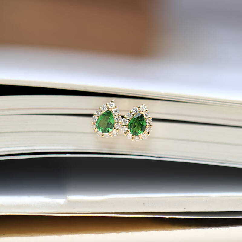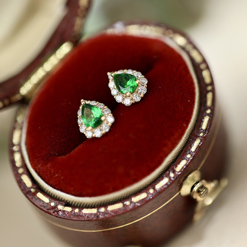 Xuanxian tsavorite earrings water drop earrings surrounded by diamonds green color earrings diamond inlaid natural diamond inlaid