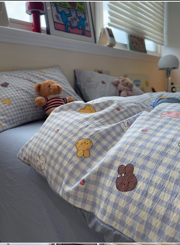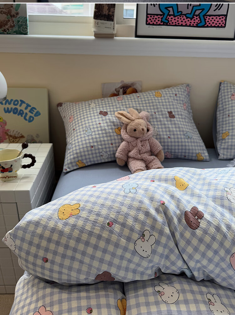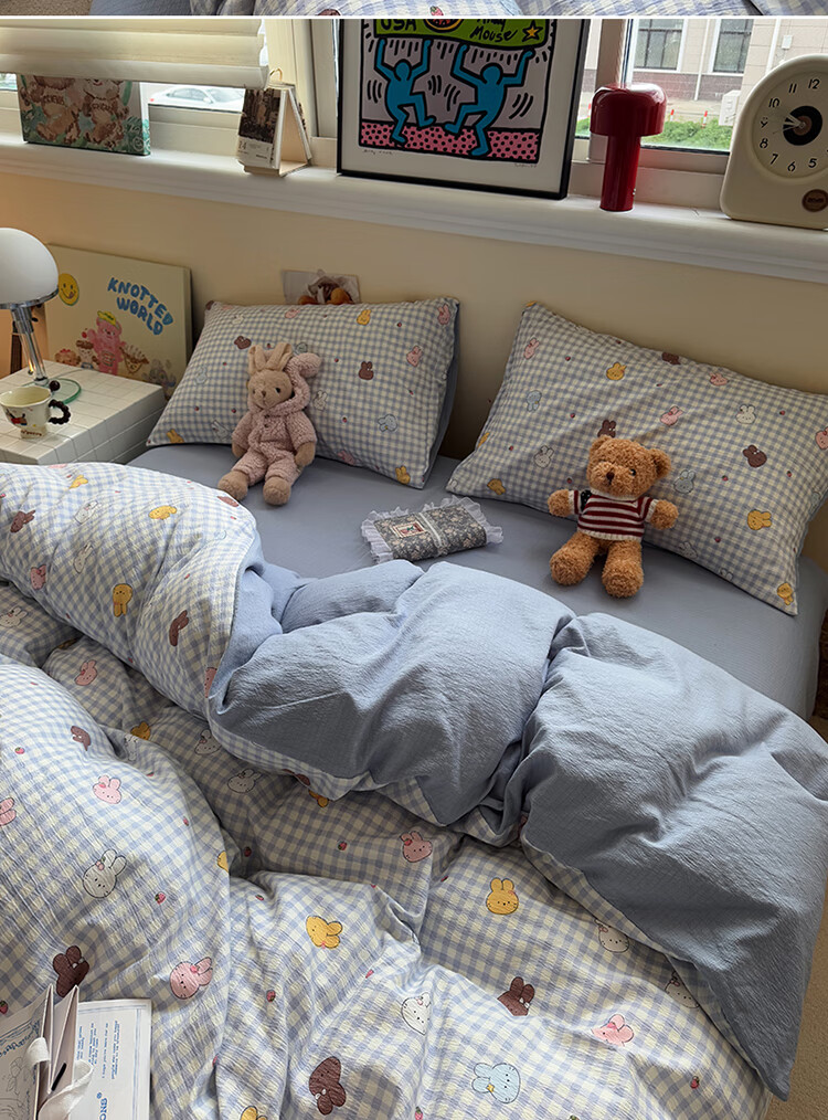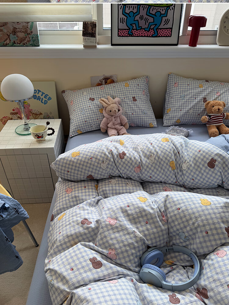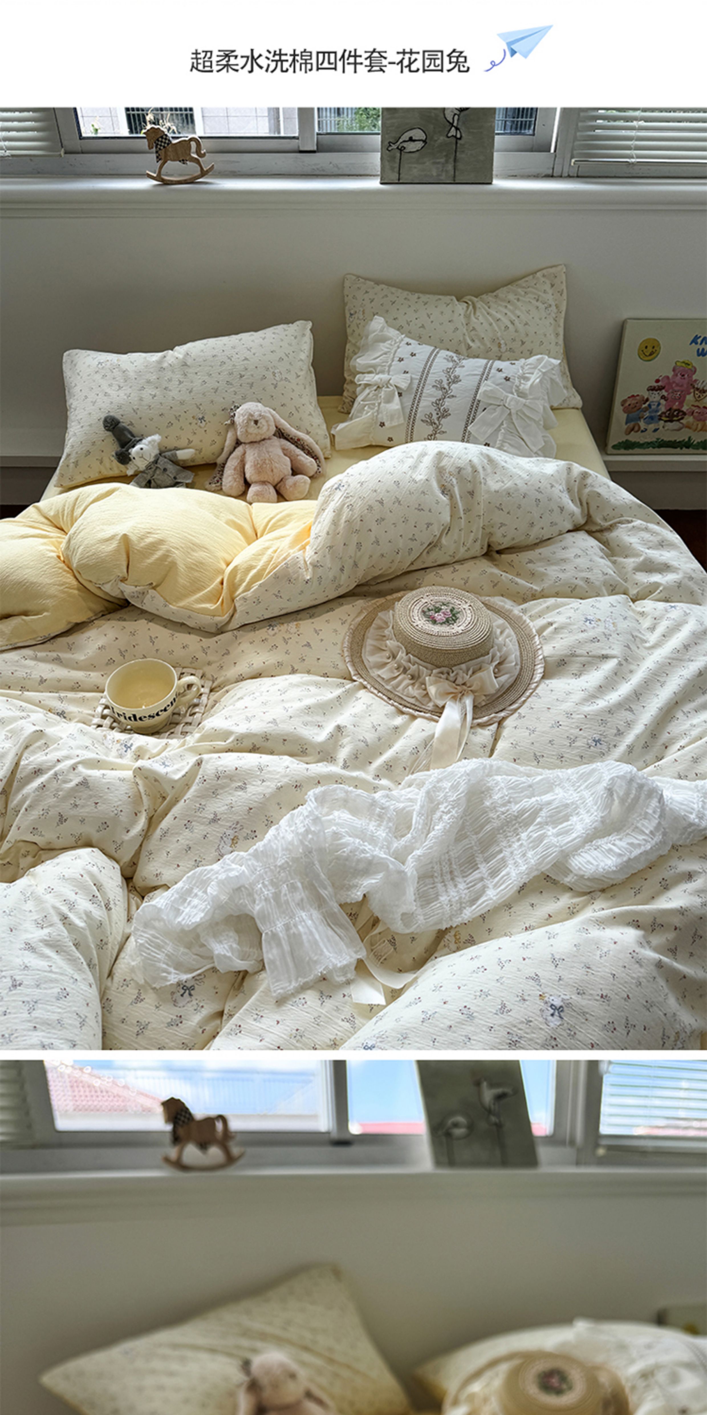 Yonghuan new type A maternal and infant grade cotton Xinjiang long-staple cotton brushed four-piece set pure cotton quilt cover sheet Bunny bed sheet style 1.2 three-piece quilt cover 150x200 1.2