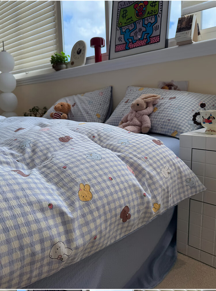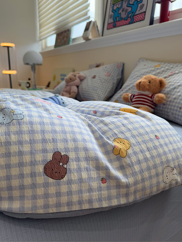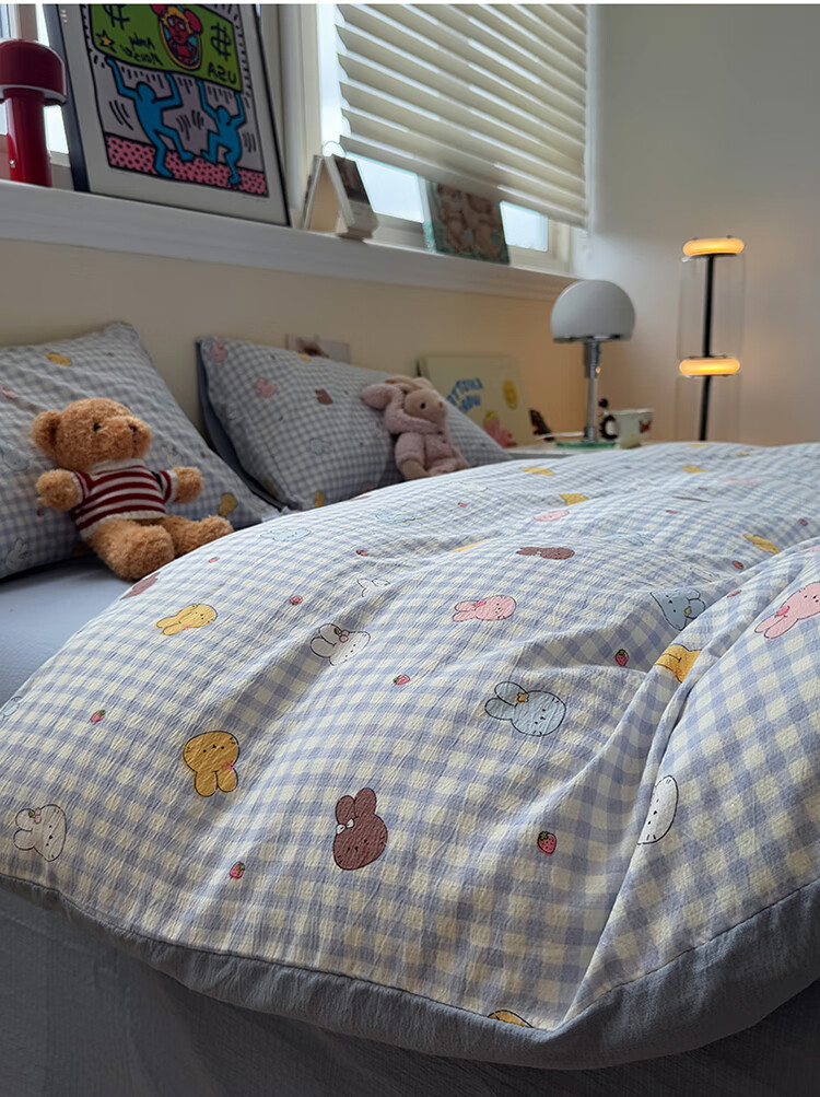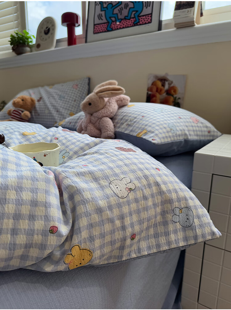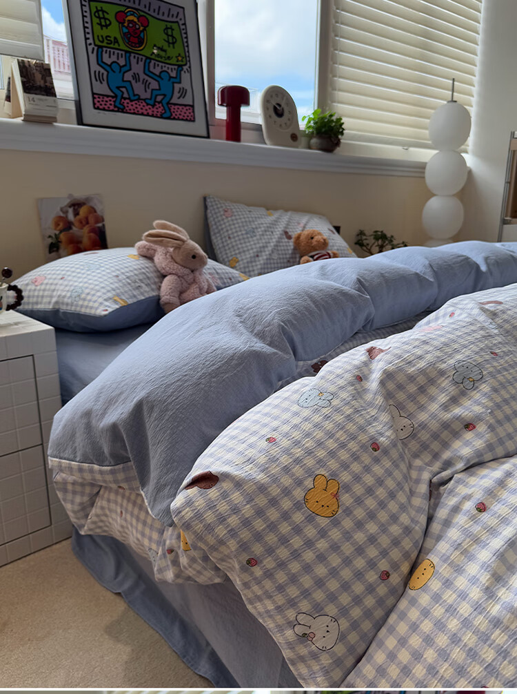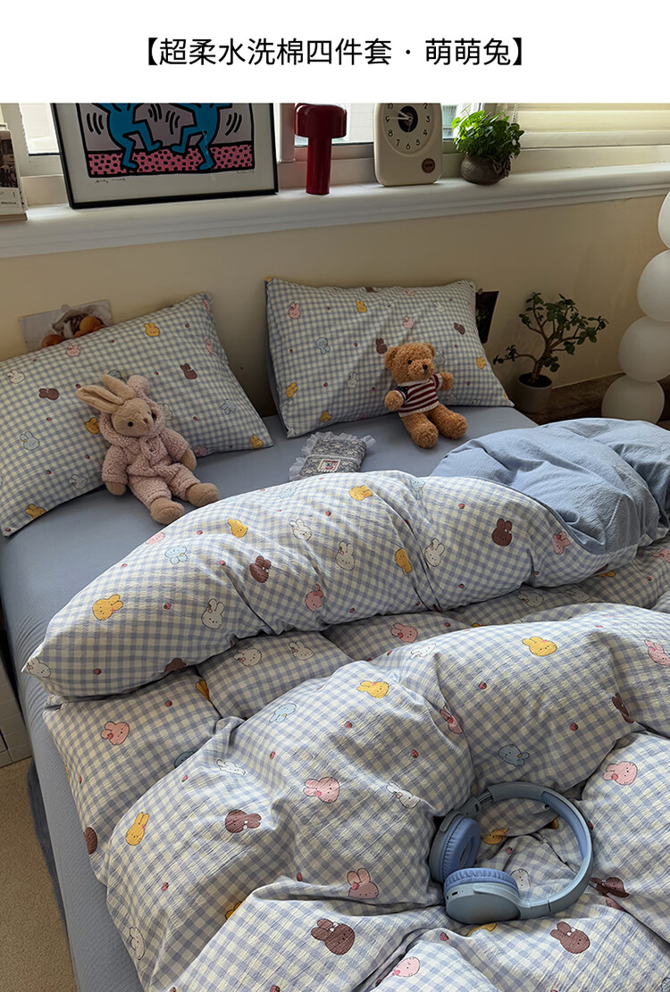 Yonghuan new type A maternal and infant grade cotton Xinjiang long-staple cotton brushed four-piece set pure cotton quilt cover sheet Bunny bed sheet style 1.2 three-piece quilt cover 150x200 1.2