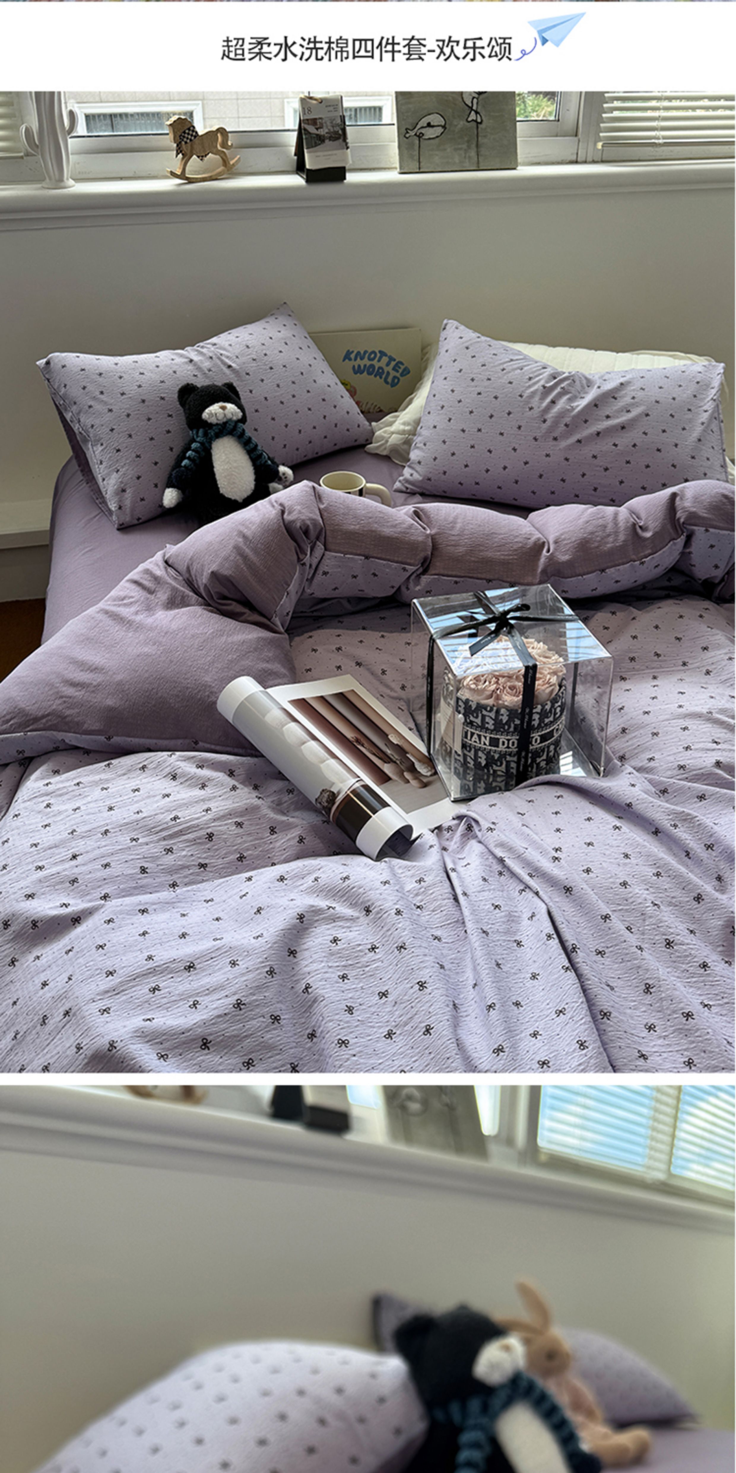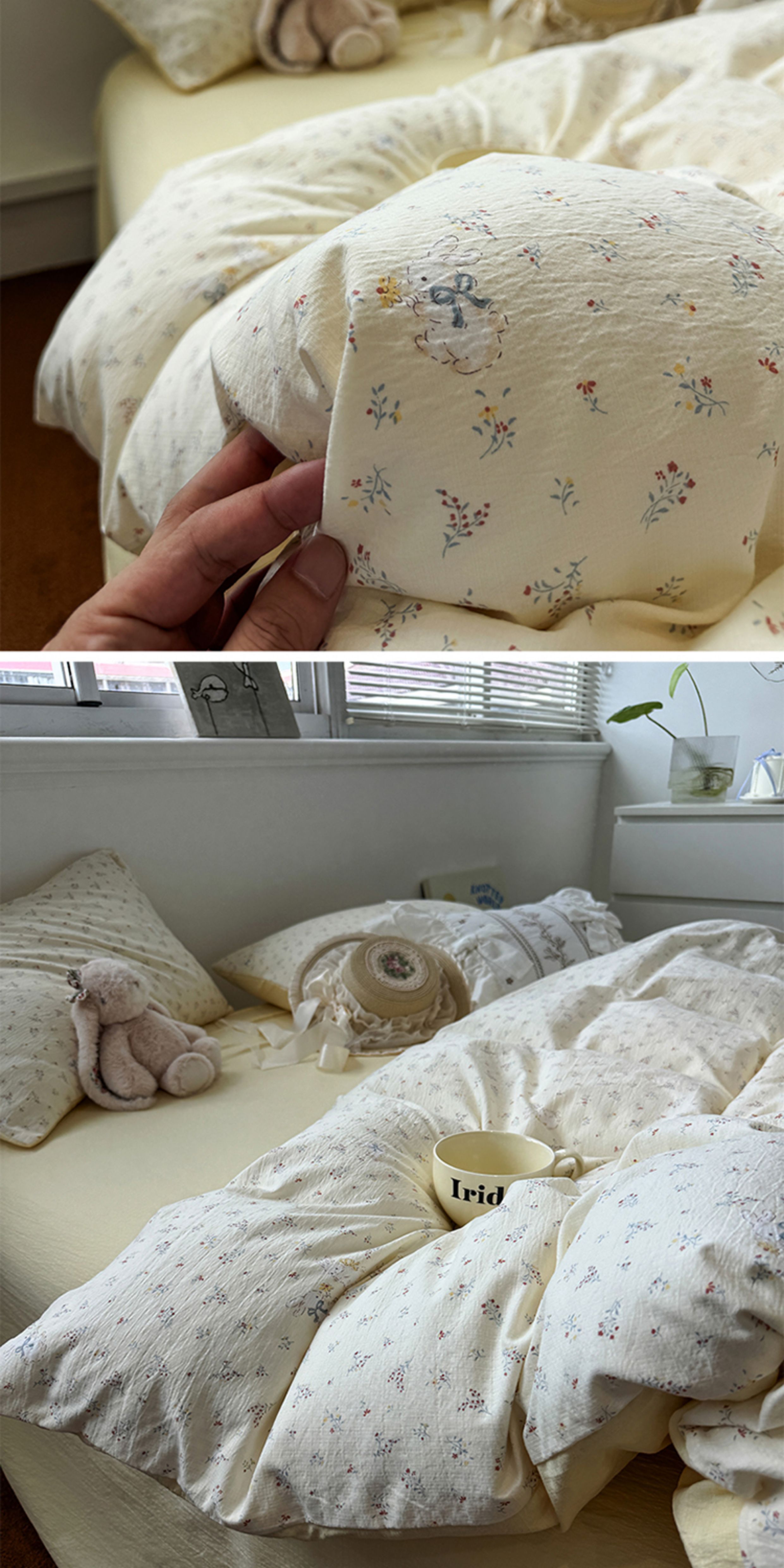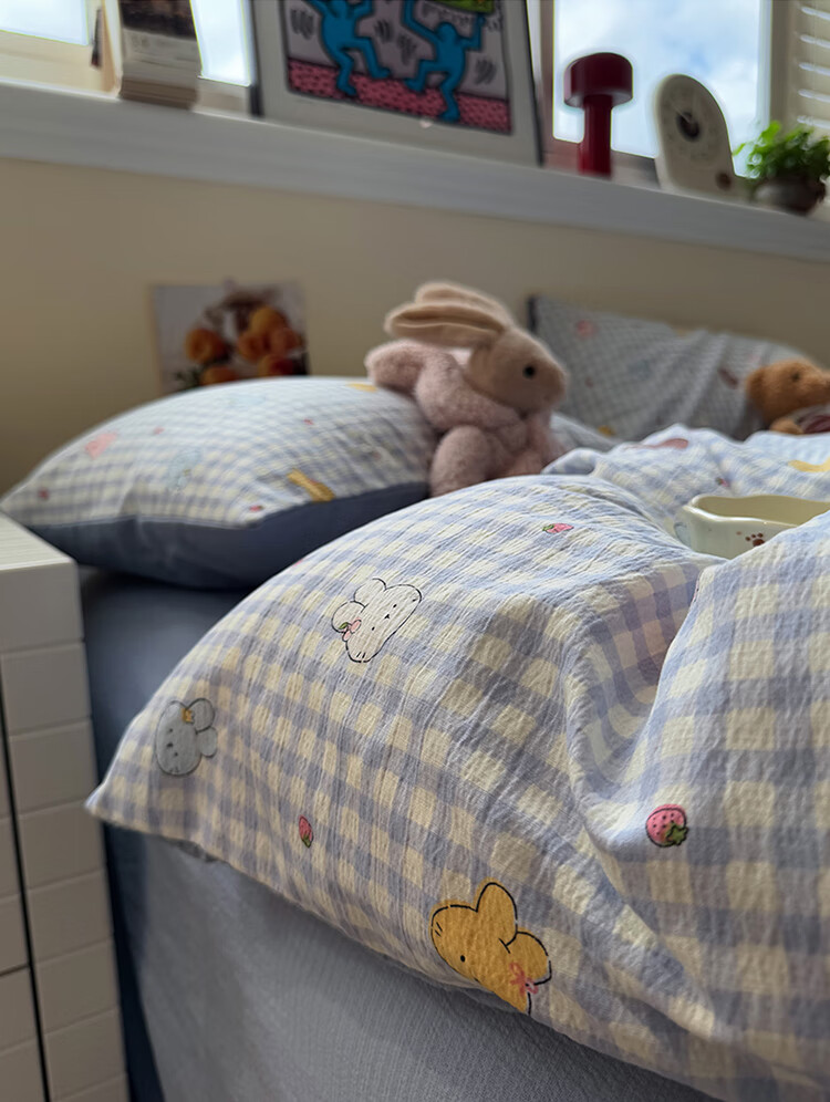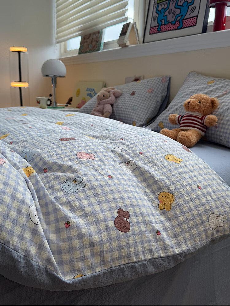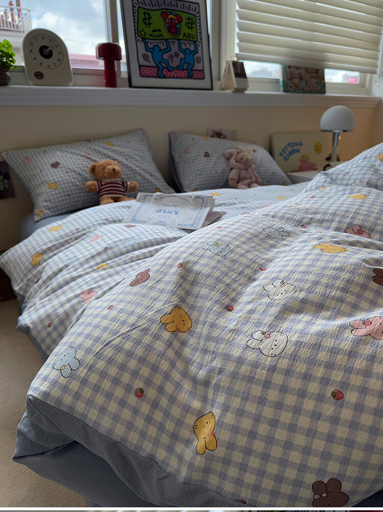 Yonghuan new type A maternal and infant grade cotton Xinjiang long-staple cotton brushed four-piece set pure cotton quilt cover sheet Bunny bed sheet style 1.2 three-piece quilt cover 150x200 1.2