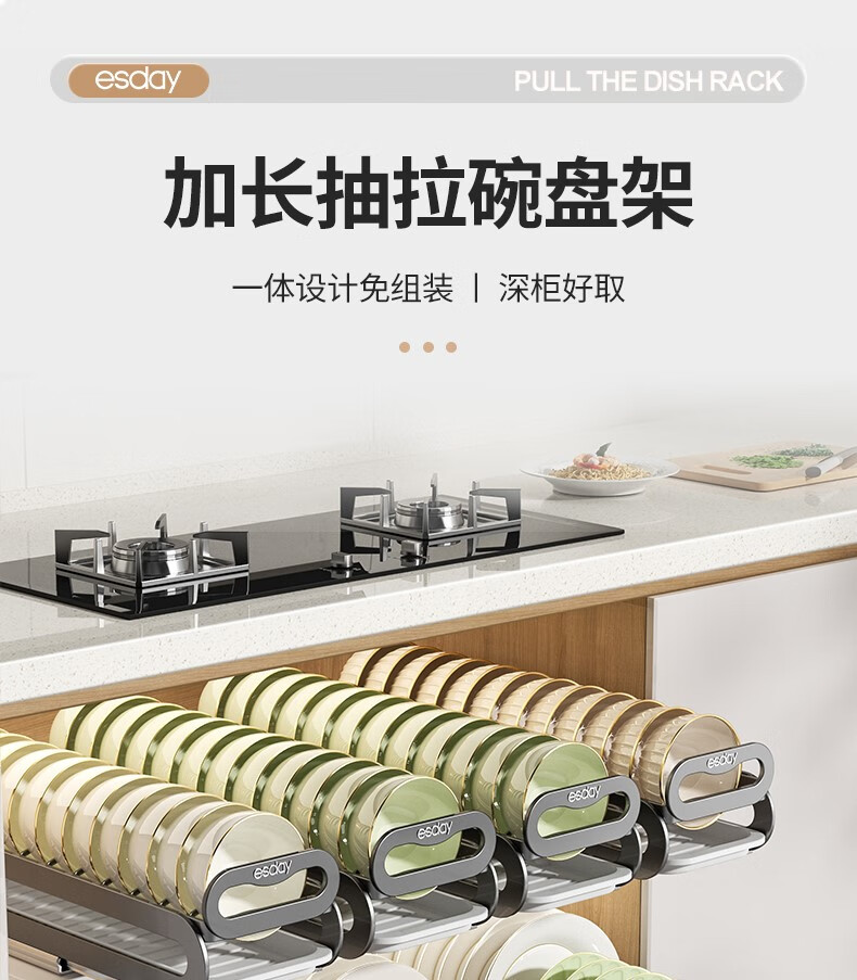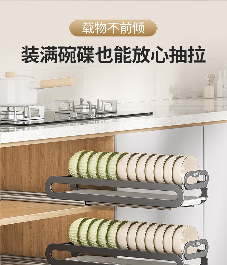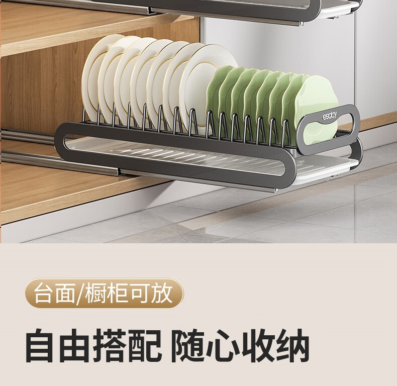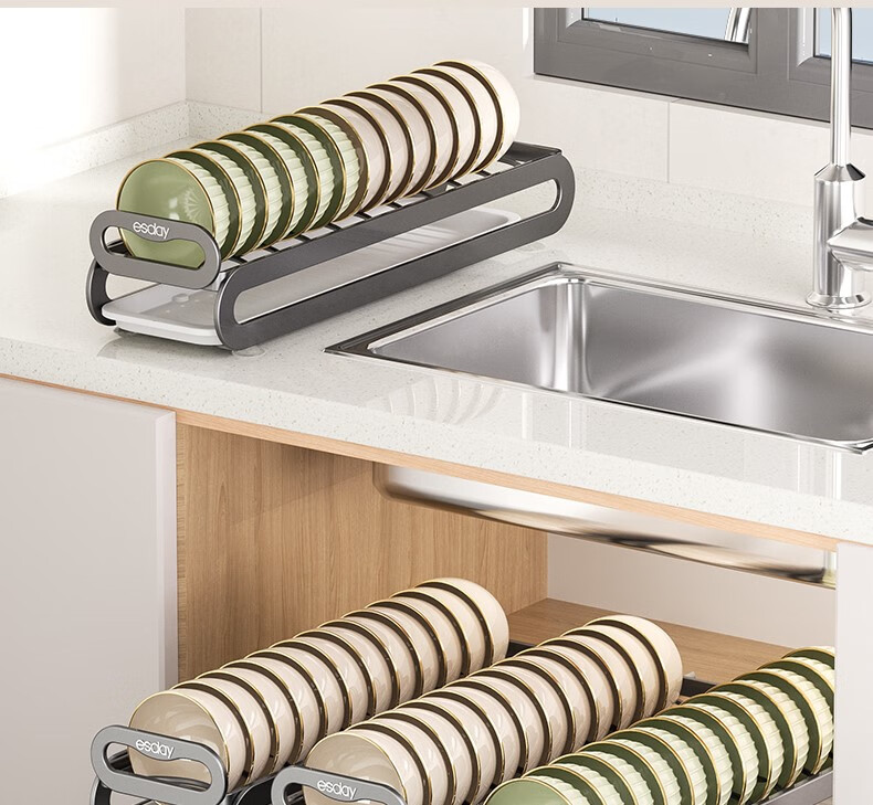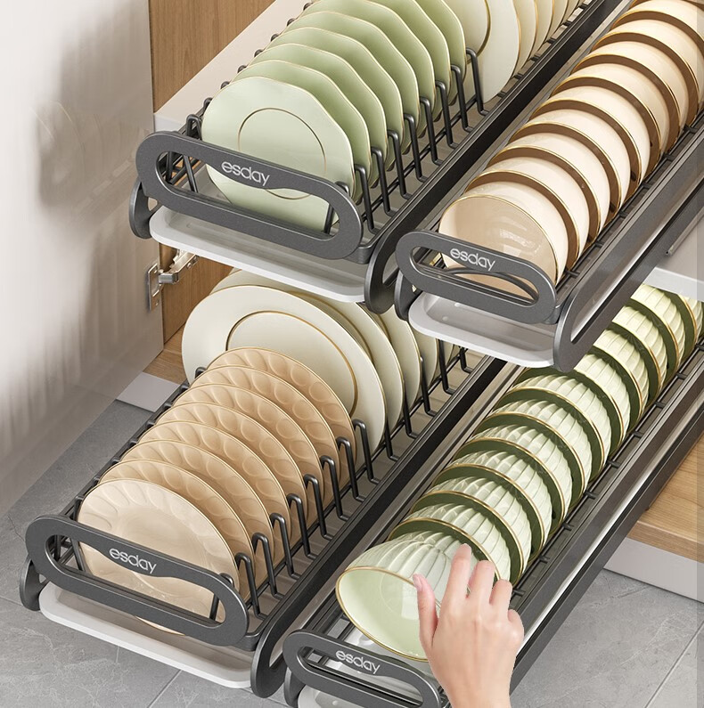 RSRDDY kitchen pull-out dish storage rack in-cabinet dish rack pull-out basket drawer-type dish plate storage rack drain rack free of installation dish rack - can hold 10 bowls suitable for countertops