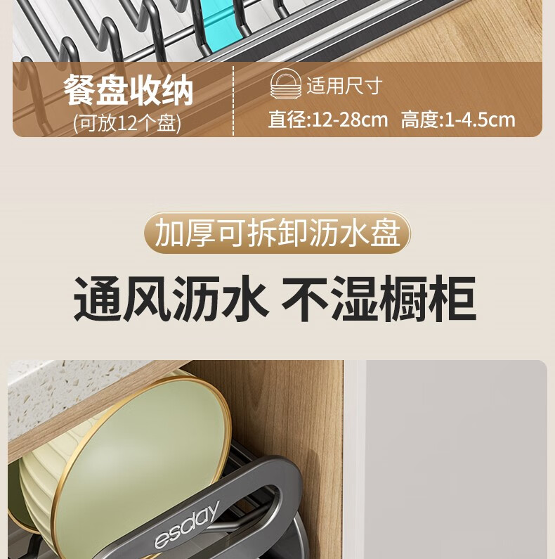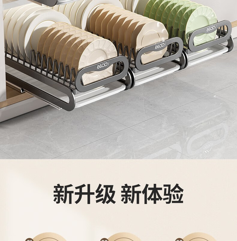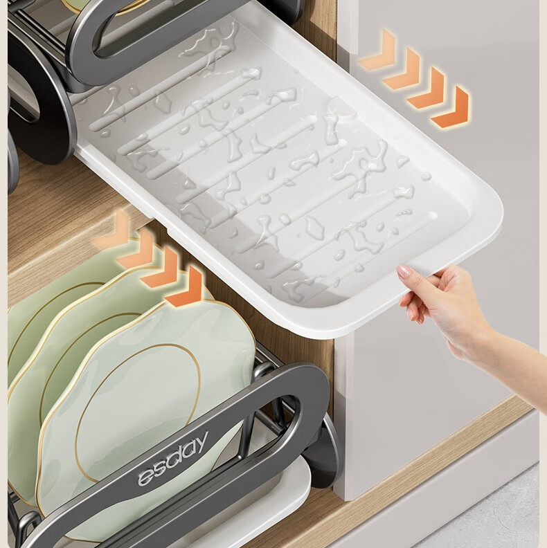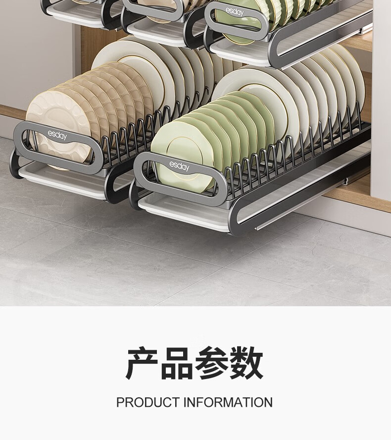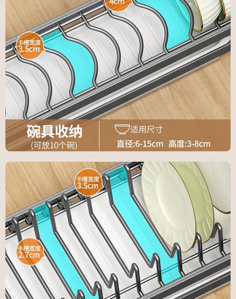 RSRDDY kitchen pull-out dish storage rack in-cabinet dish rack pull-out basket drawer-type dish plate storage rack drain rack free of installation dish rack - can hold 10 bowls suitable for countertops