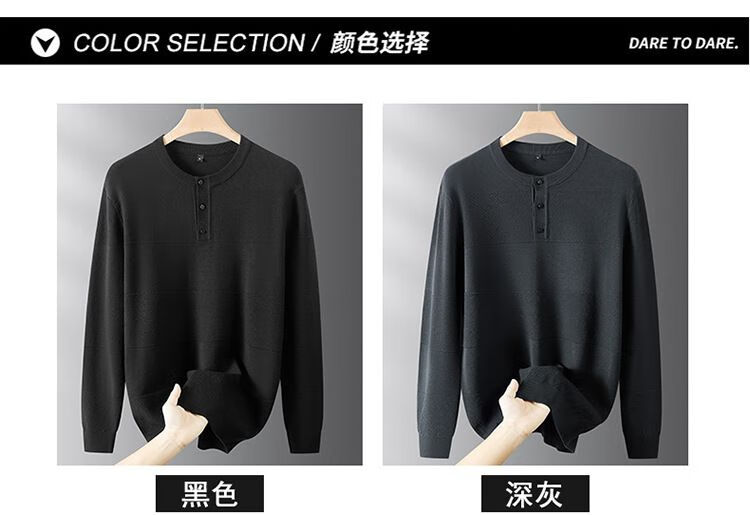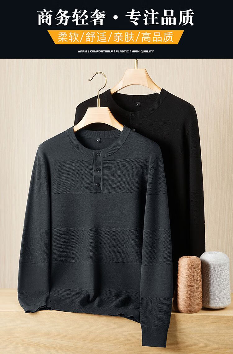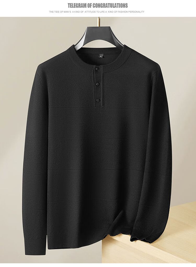 AX Armani broken code 2026 fashionable pullover Henry collar sweater men's large size bottoming shirt fat man loose casual autumn black XL