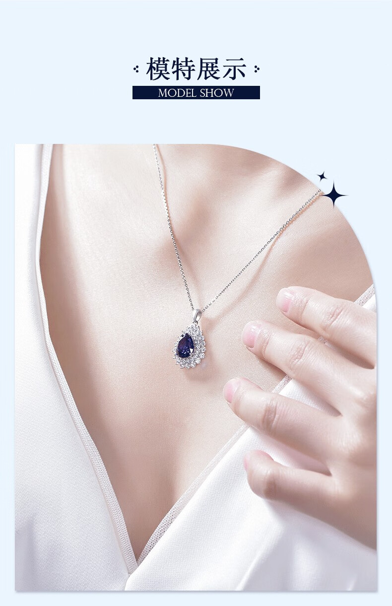 MHFDO Old Phoenix Gold Store Tika Shiqi 925 Silver Ocean Heart Necklace Water Drop Gemstone Pendant Collarbone Tanzanite Blue Necklace + Brand Box 45cm