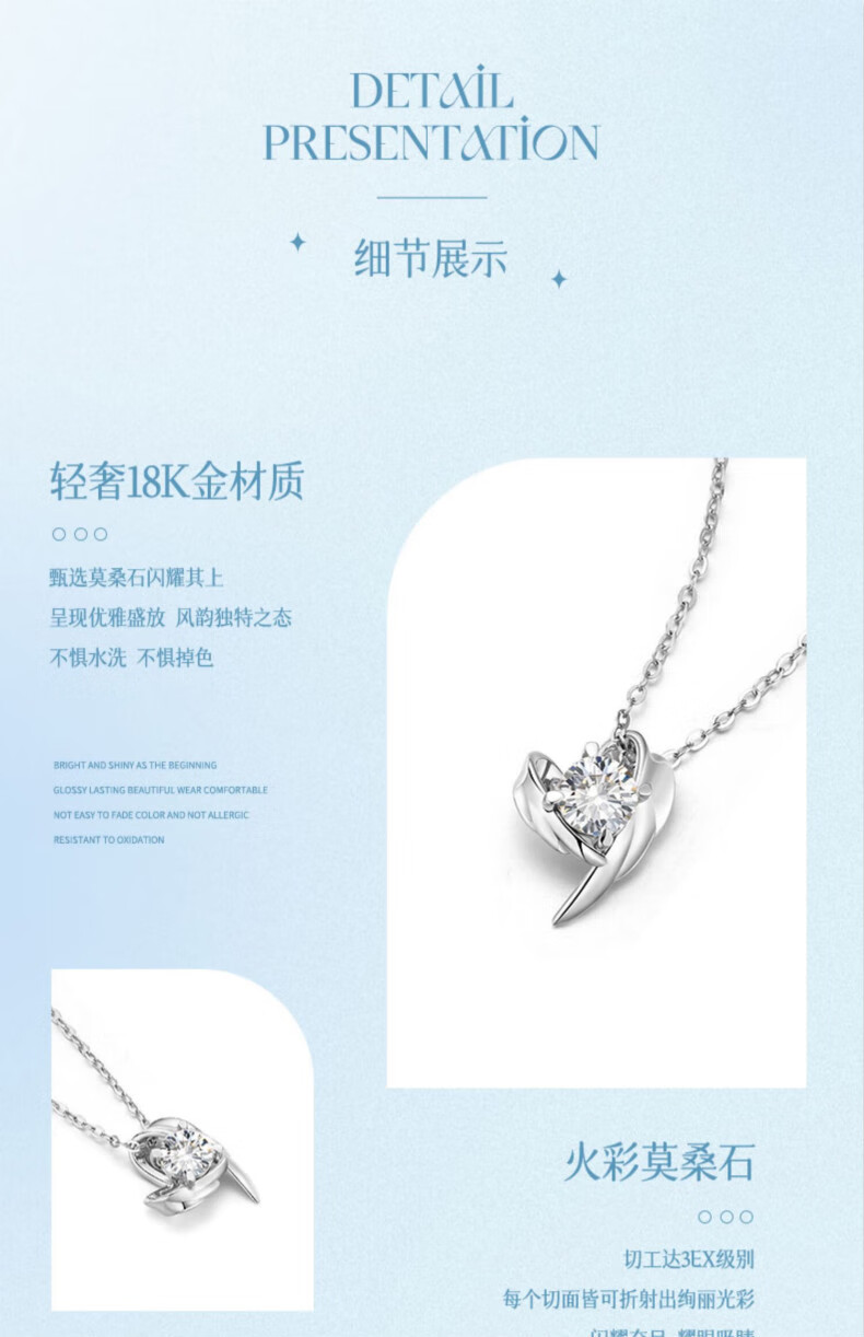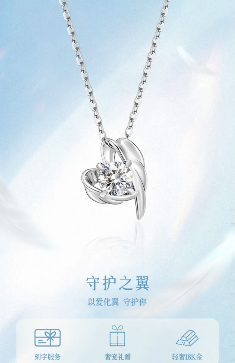 Xuanxian necklace female gift guardian wings wings moissanite gold pendant high Chinese Valentine's Day birthday gift for girlfriend gift for girlfriend