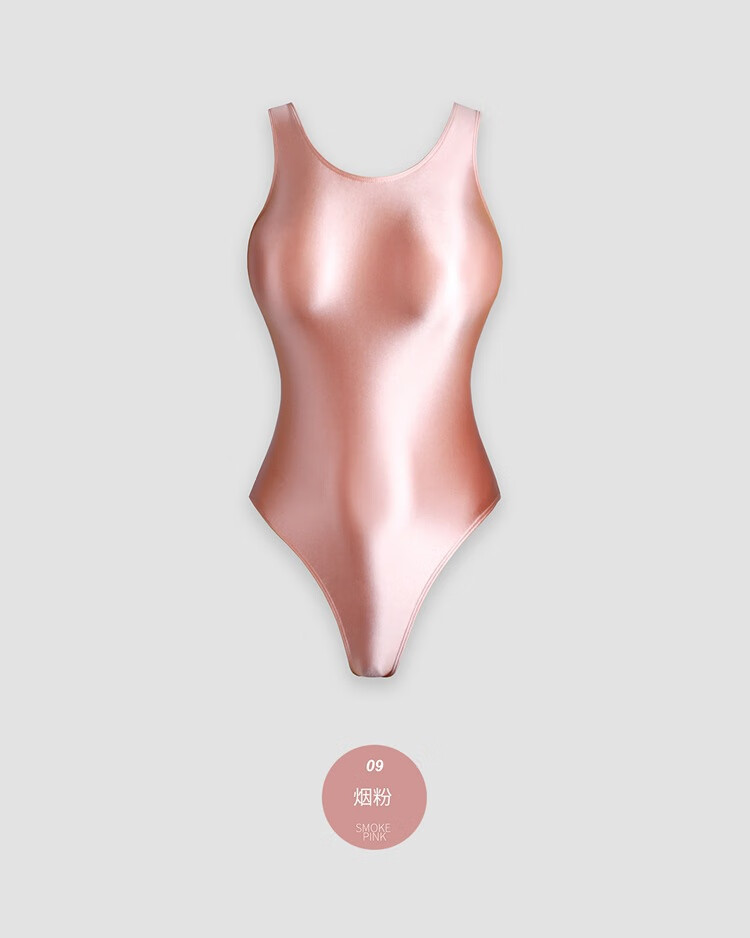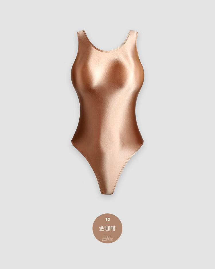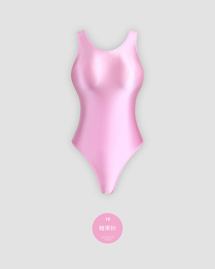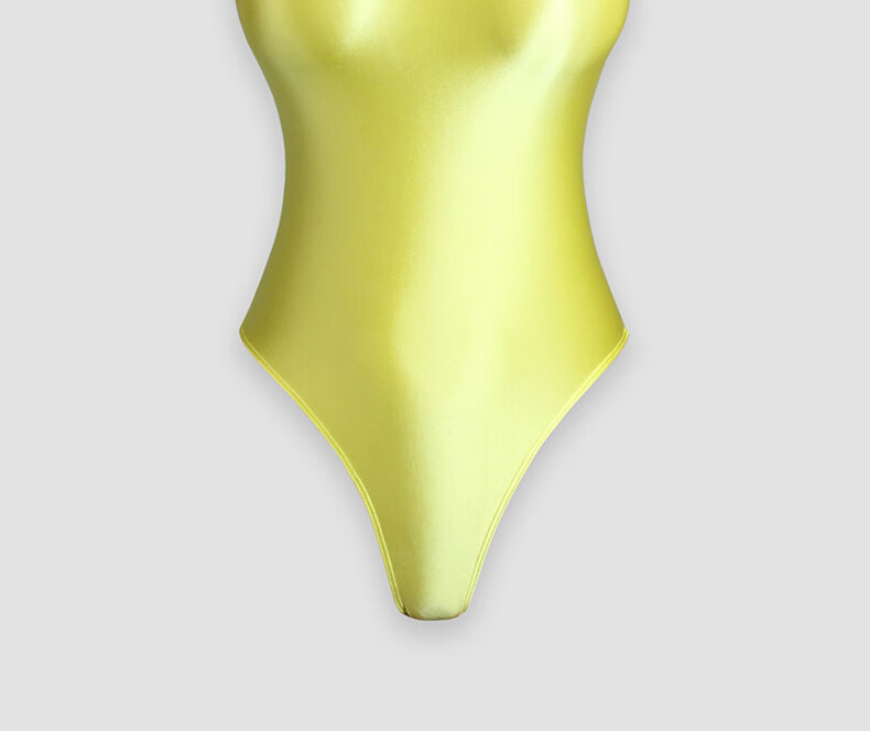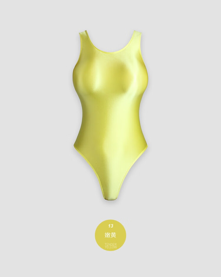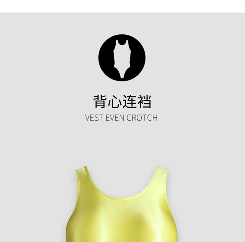 Solid color tight-fitting silky glossy high-cut sherbin shape gymnastics one-piece swimsuit women's vest with crotch ballet dance suit bright yellow S ST hip style