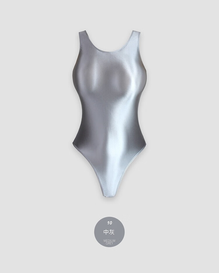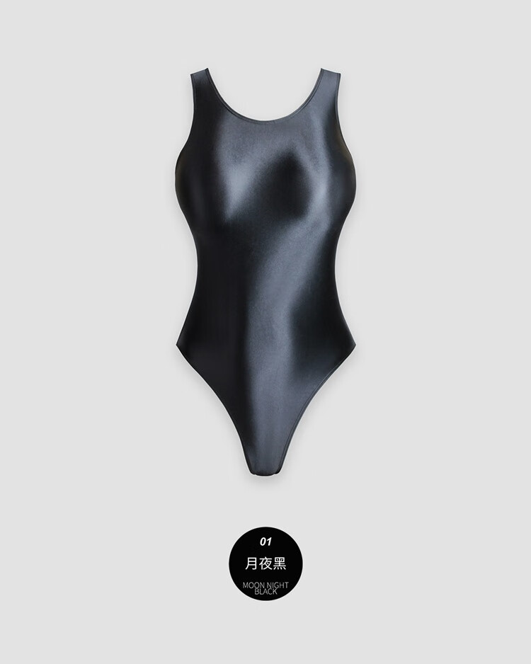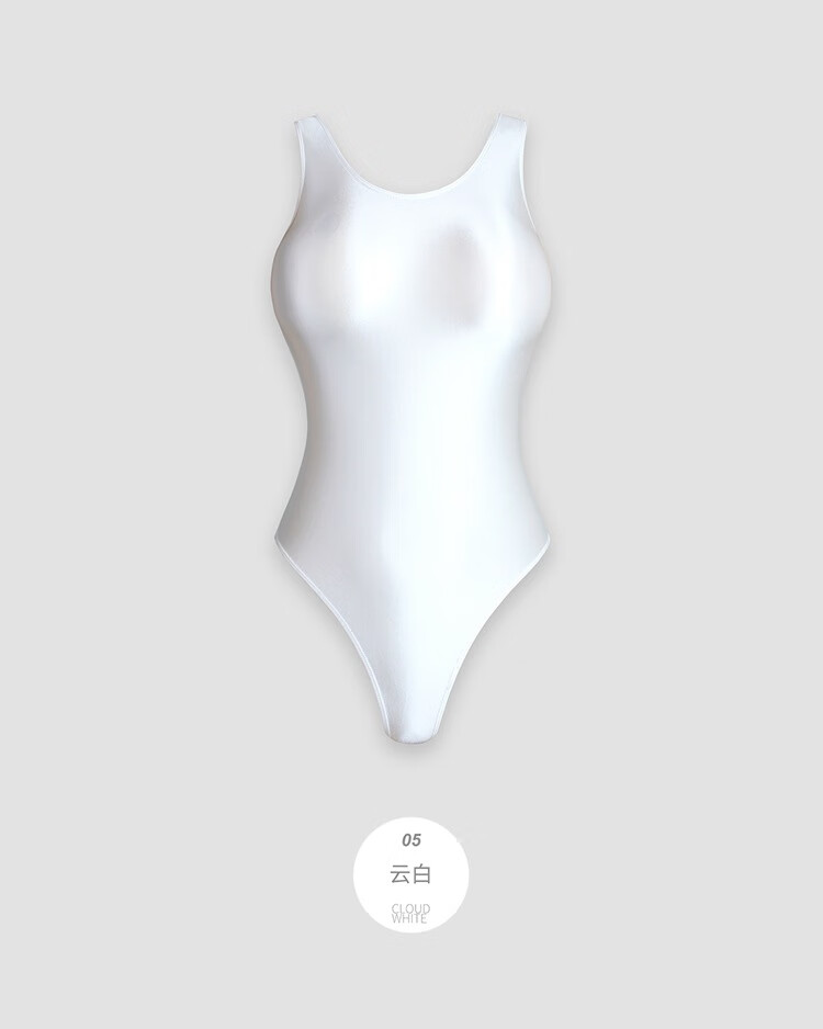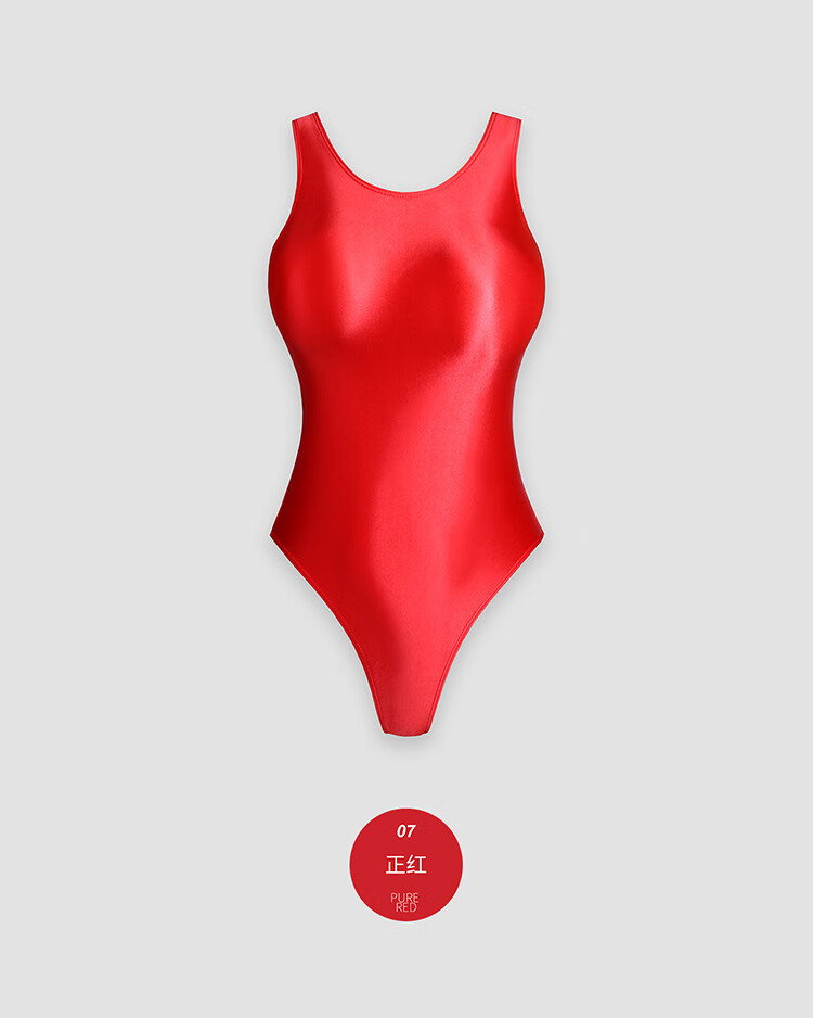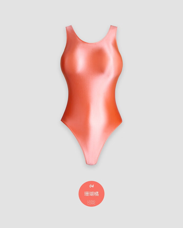 Solid color tight-fitting silky glossy high-cut sherbin shape gymnastics one-piece swimsuit women's vest with crotch ballet dance suit bright yellow S ST hip style