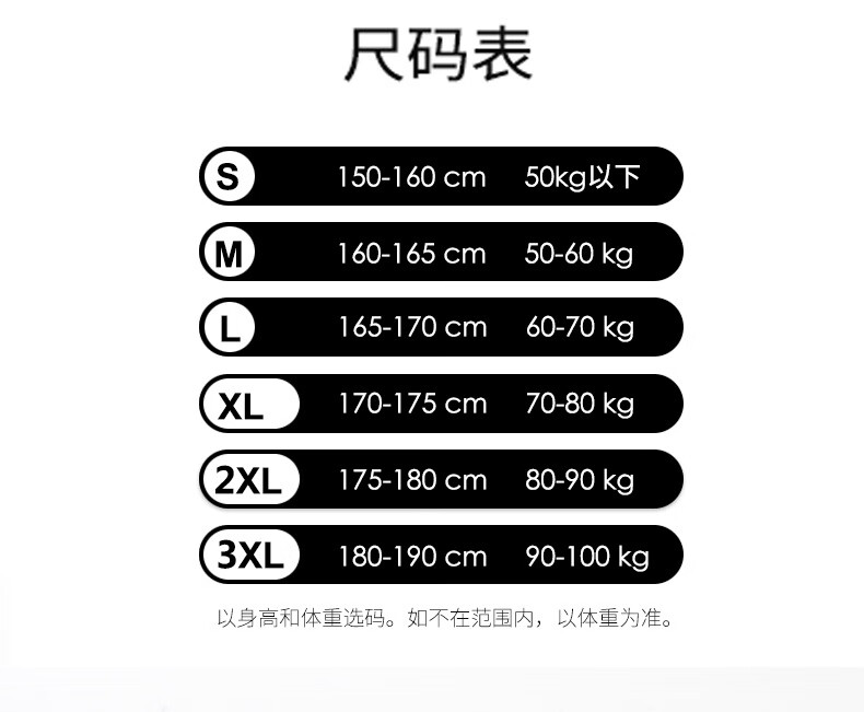 China (cm) 165 / 88-90 170 / 96-98 175 / 108-110 180 / 118-122 185 / 126-130