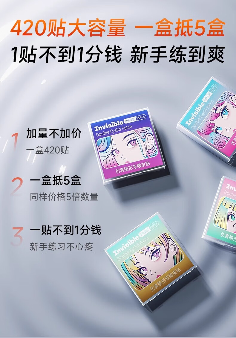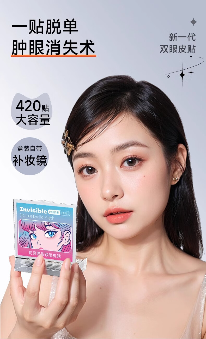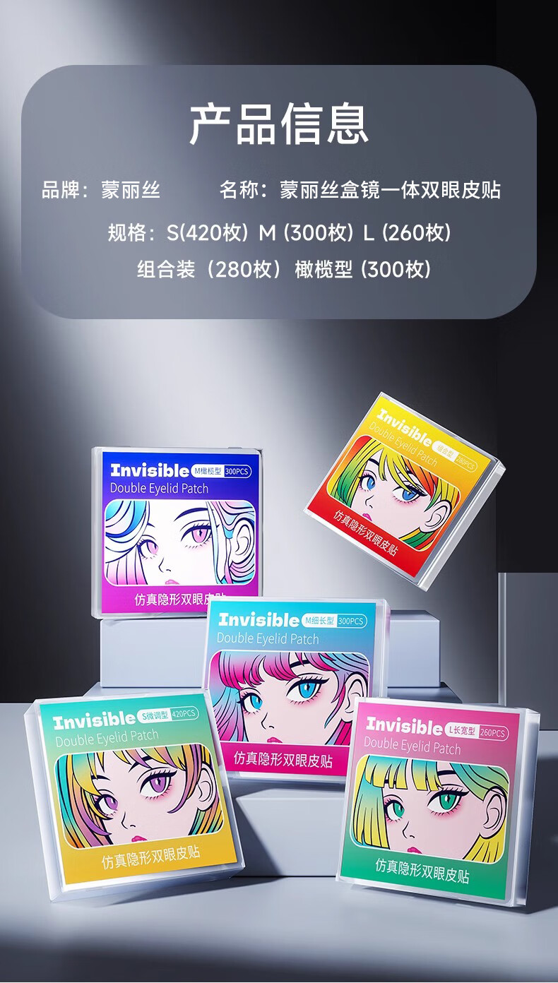 Menglisi 2025 new style dust-proof double eyelid patch with mirror, inner double eyelid patch for swollen eyes, natural, traceless, breathable inner double positioning patch, S-fine adjustment type - (inner double eyelid adjustment) 420 patches