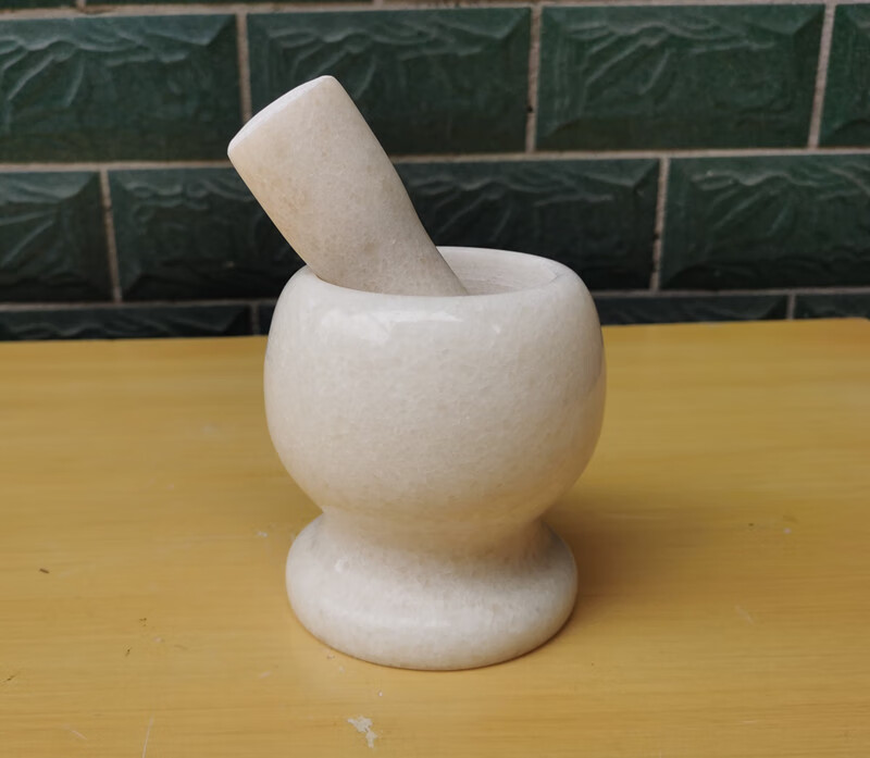 Xuan Liang Japan imported quality white marble mortar grinder garlic mortar household stone garlic pounder garlic masher garlic press snowflake white stone mortar set